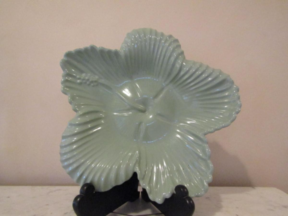 Vintage Abingdon Glazed Pottery Hibiscus Shaped Bowl- Approx 13" Across