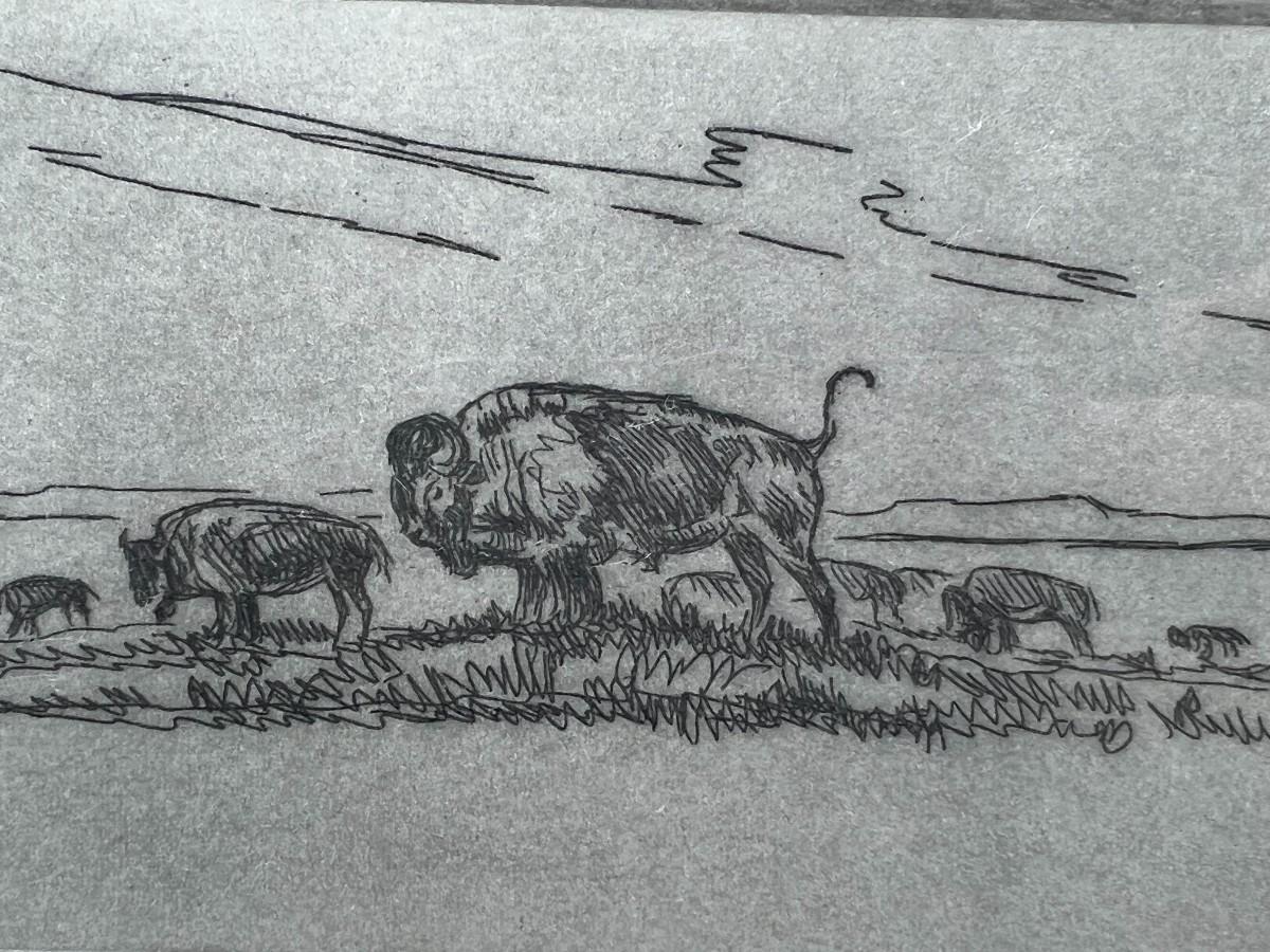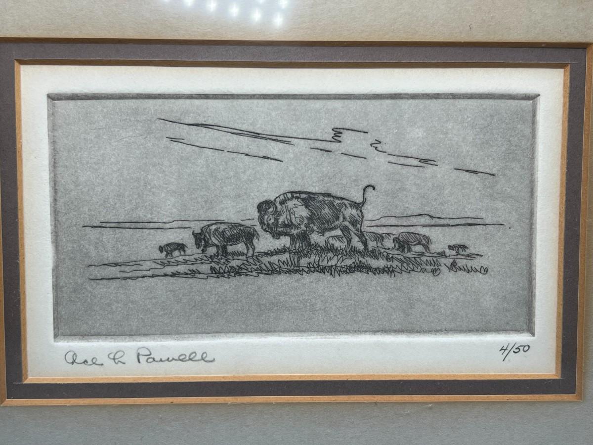 Vintage Ace Powell Signed & Numbered Buffalo Etching American West Art