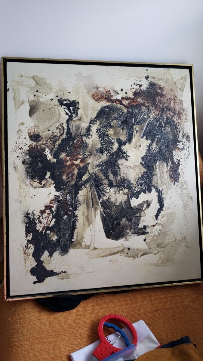 Vintage abstract acrylic painting with sand