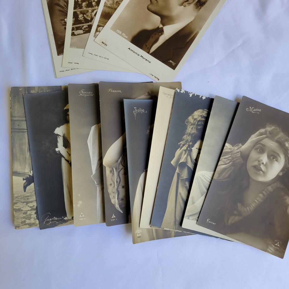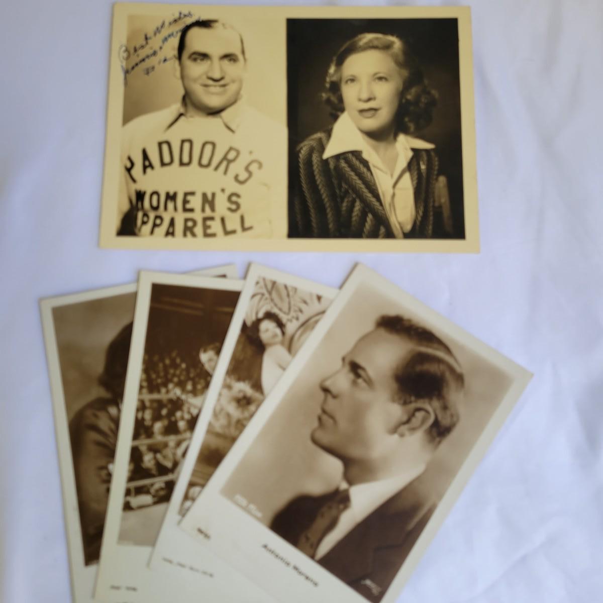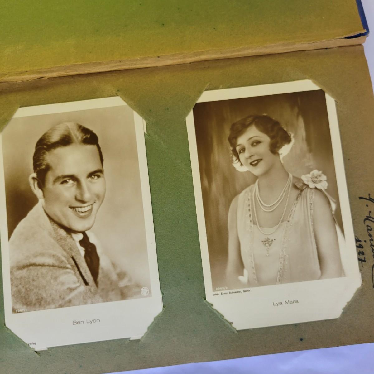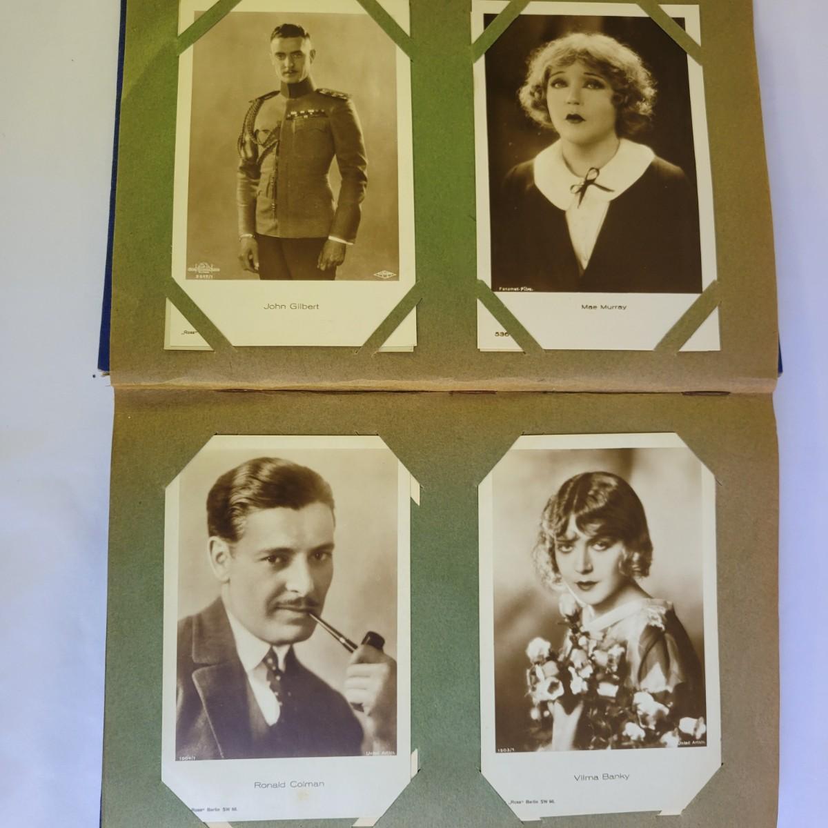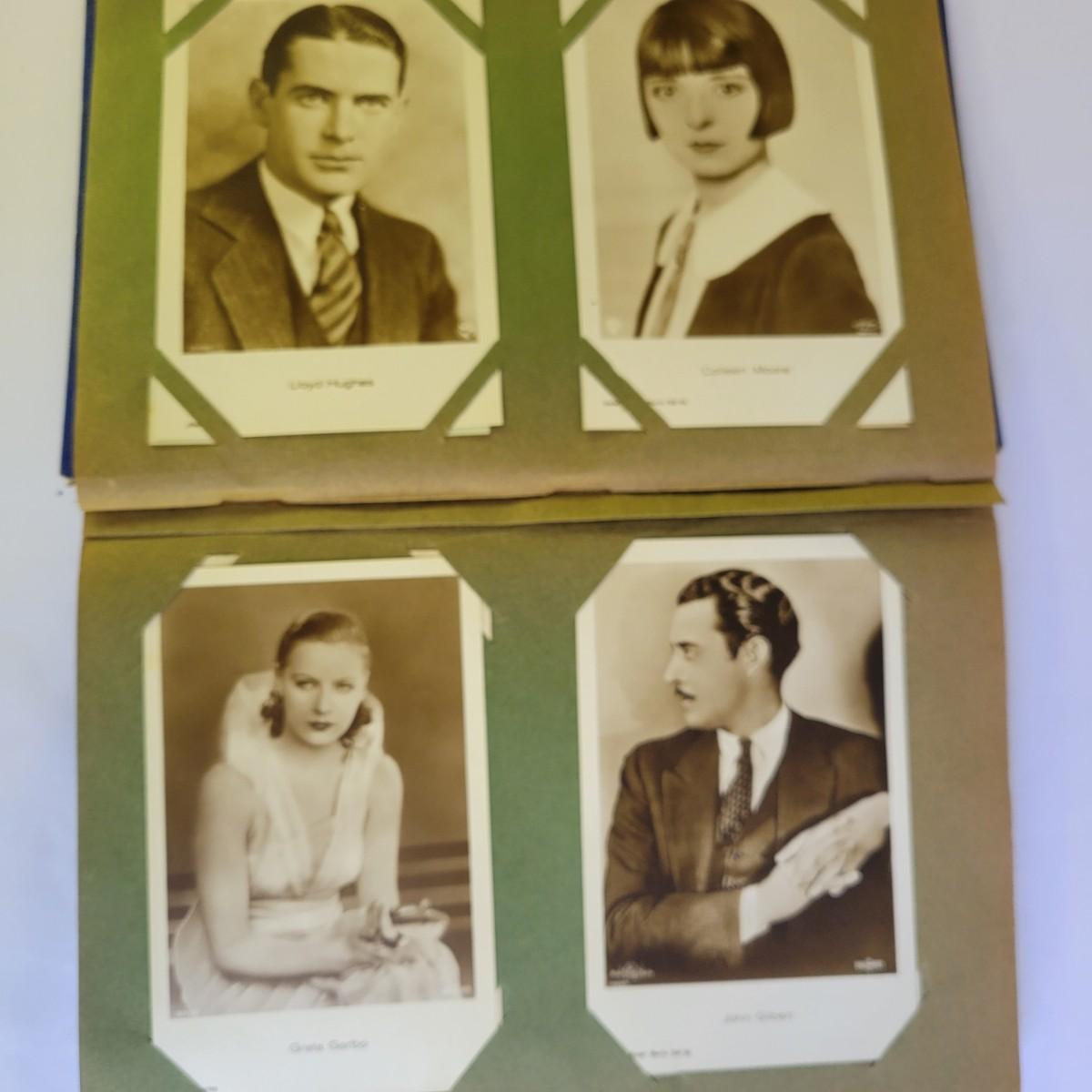 A collection of vintage actor postcards and photos in a bound book with over 20 pages. Also includes some loose postcards. Shipping available