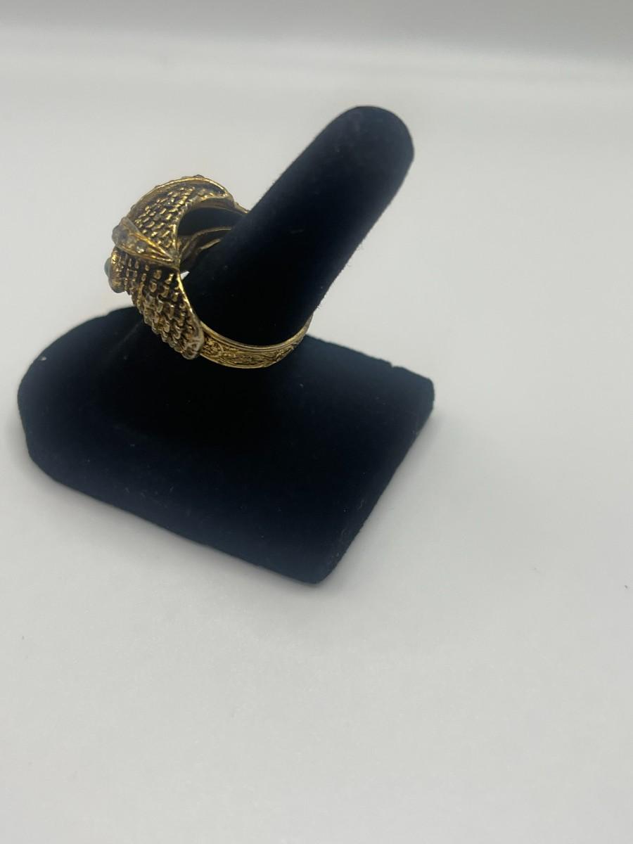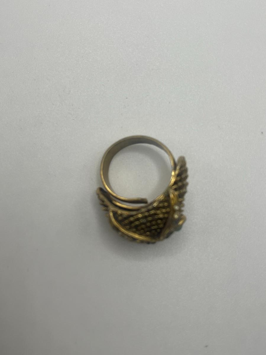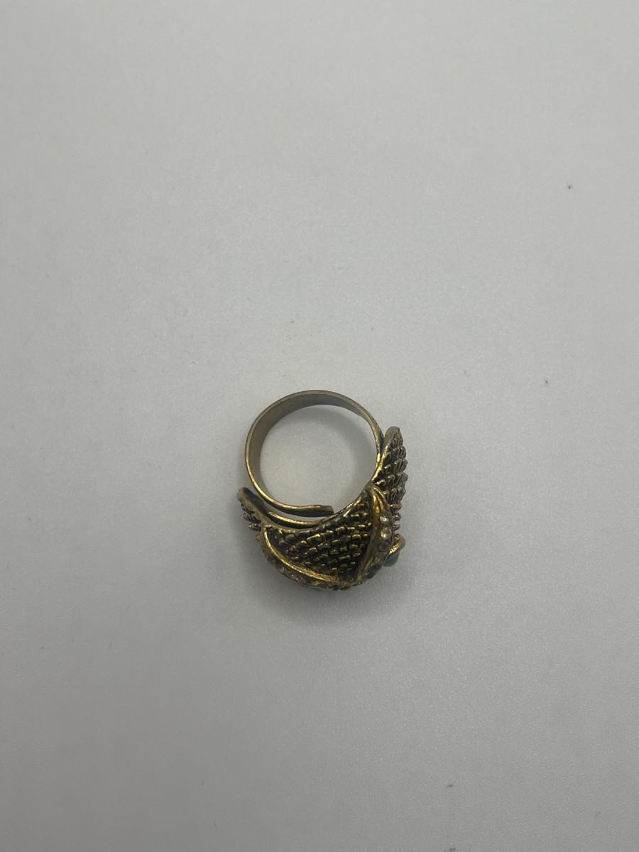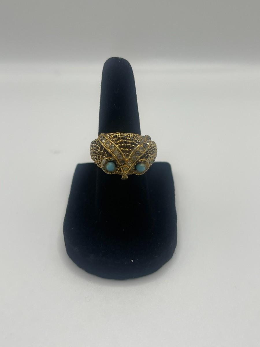 Vintage adjustable owl ring. Gold tone finish with blue beads for the eyes.