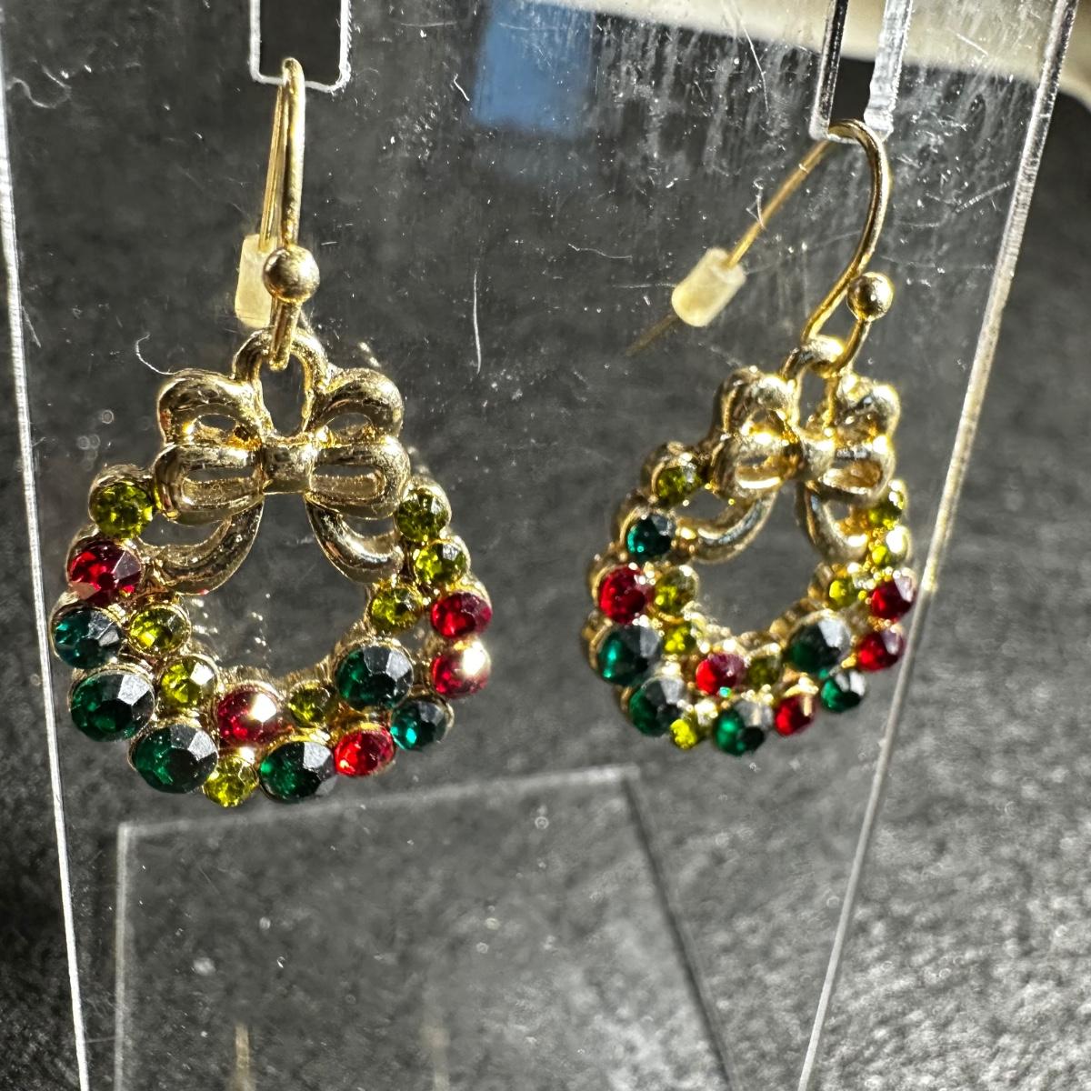 Vintage adorable Christmas wreath earrings