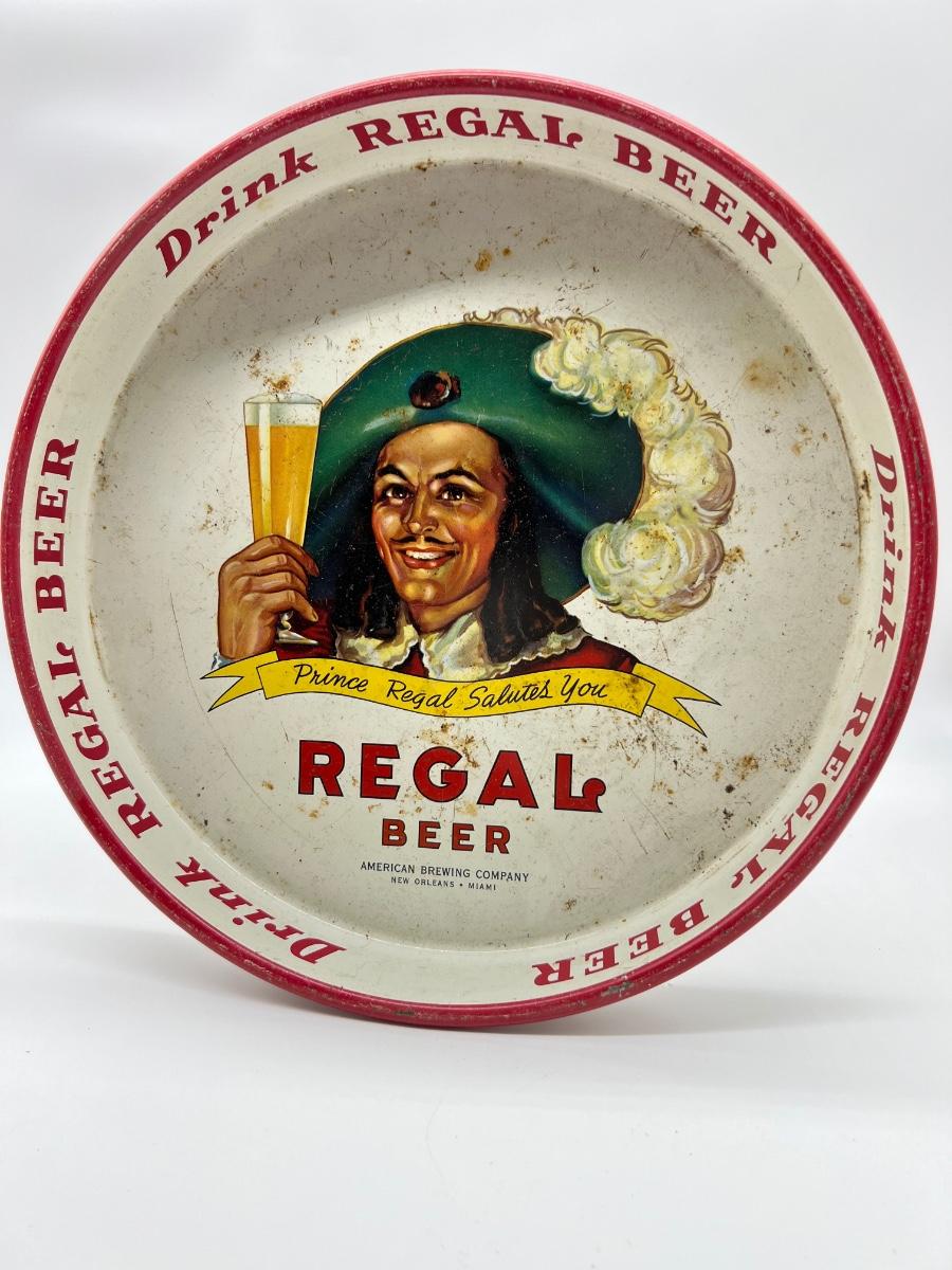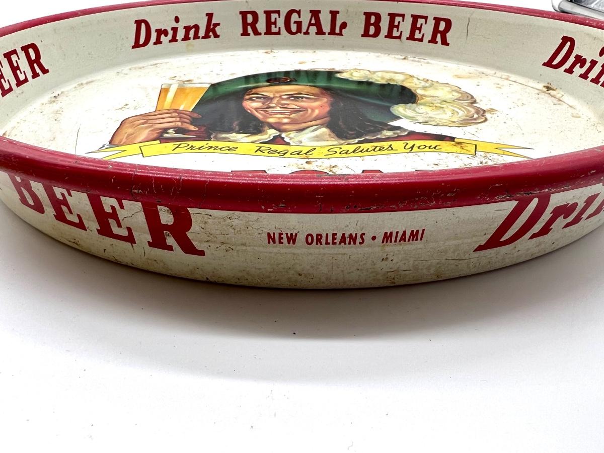 Regal Beer of New Orleans Miami Advertising Metal Tray. Vintage Prince Salutes Falstaff Breweriana Metal Beer Tray,
