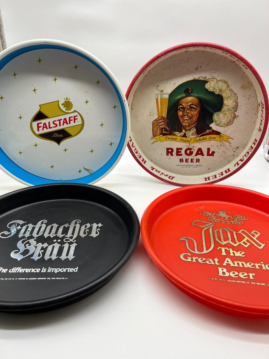JAX THE GREAT AMERICAN BEER Plastic Tray, FABACHER Advertising plastic Beer Tray. All measure 13 inches round. See pictures for condition.