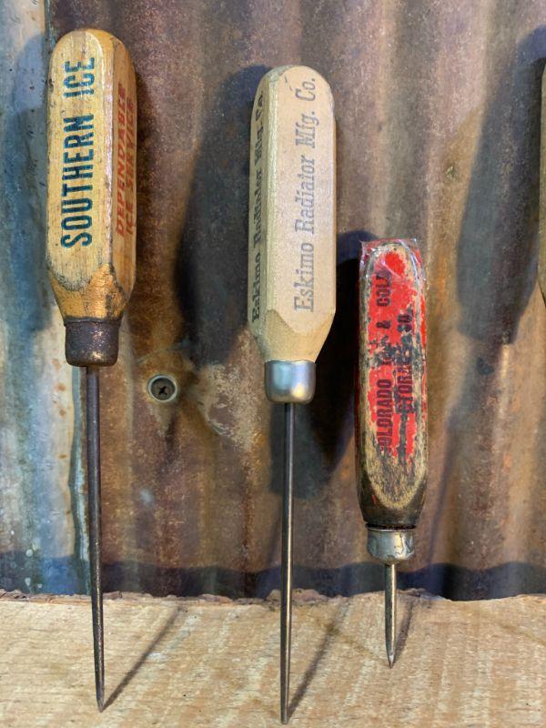 Vintage Advertisement Ice Picks with Wood Handle - QTY 6