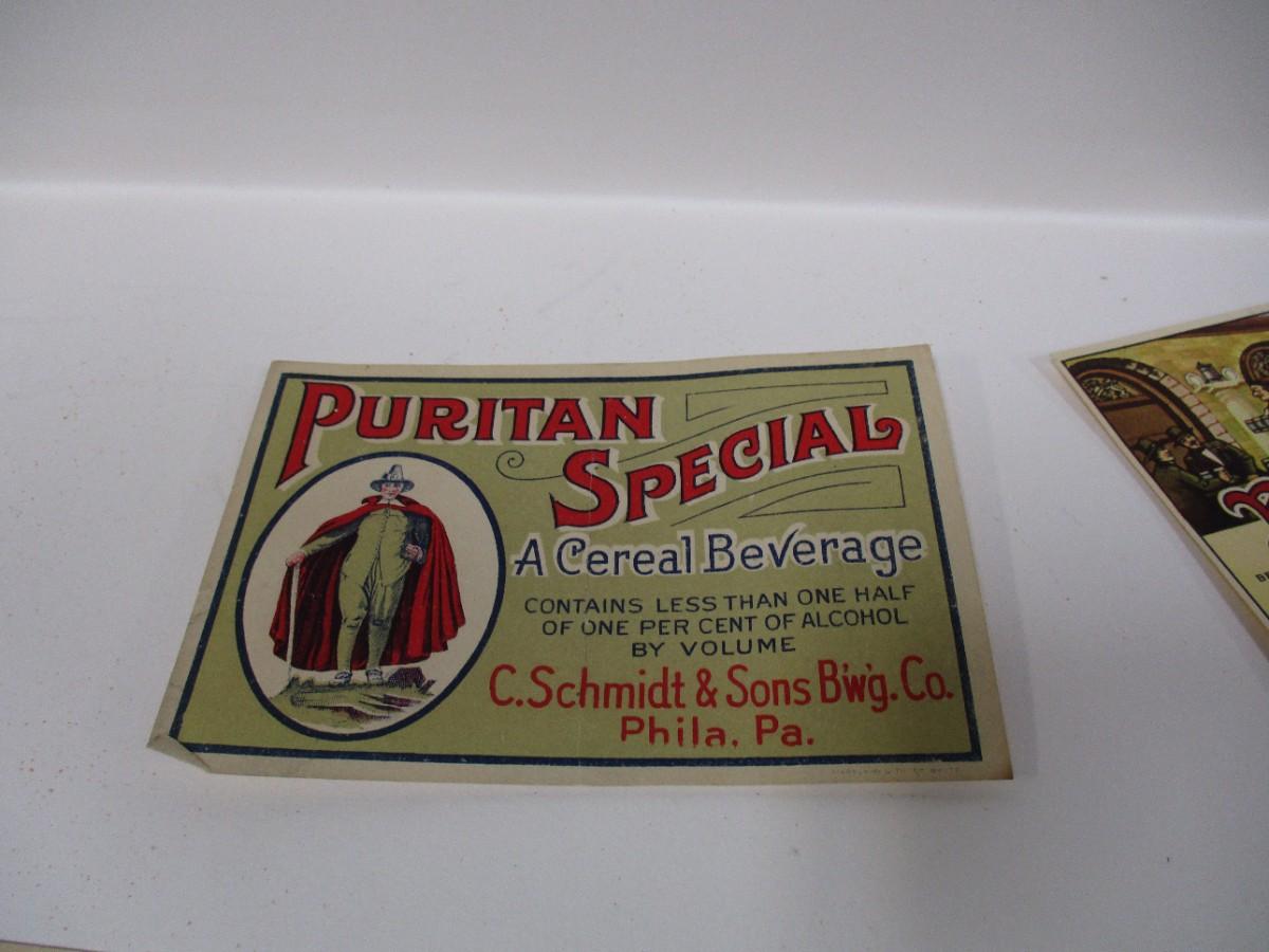 Vintage Advertising Paper Beer Labels - Schmidt's - Puritan Special - Bremer Bran - Valley Forge