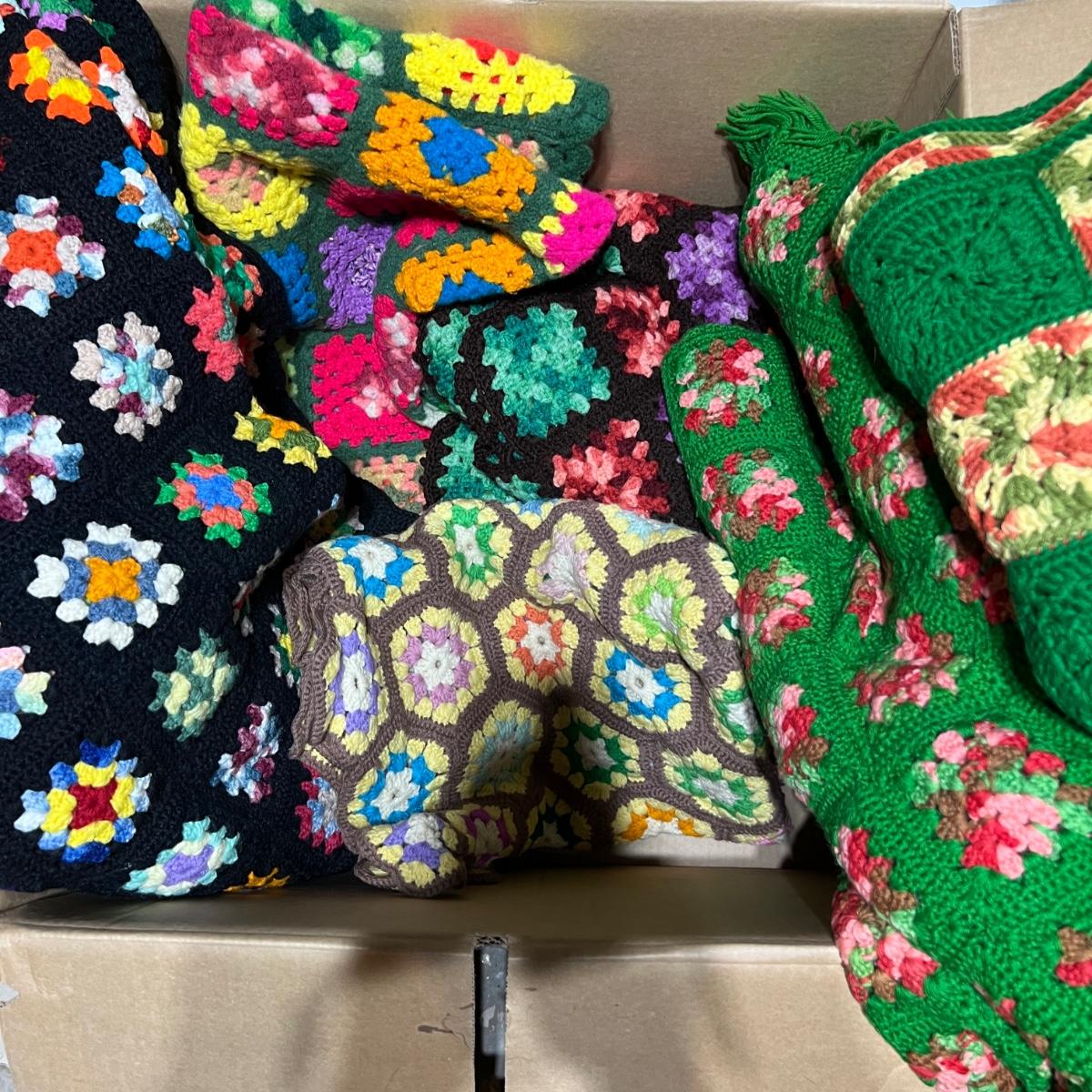 Lot of 6 Vintage Granny Square Afghans Blankets