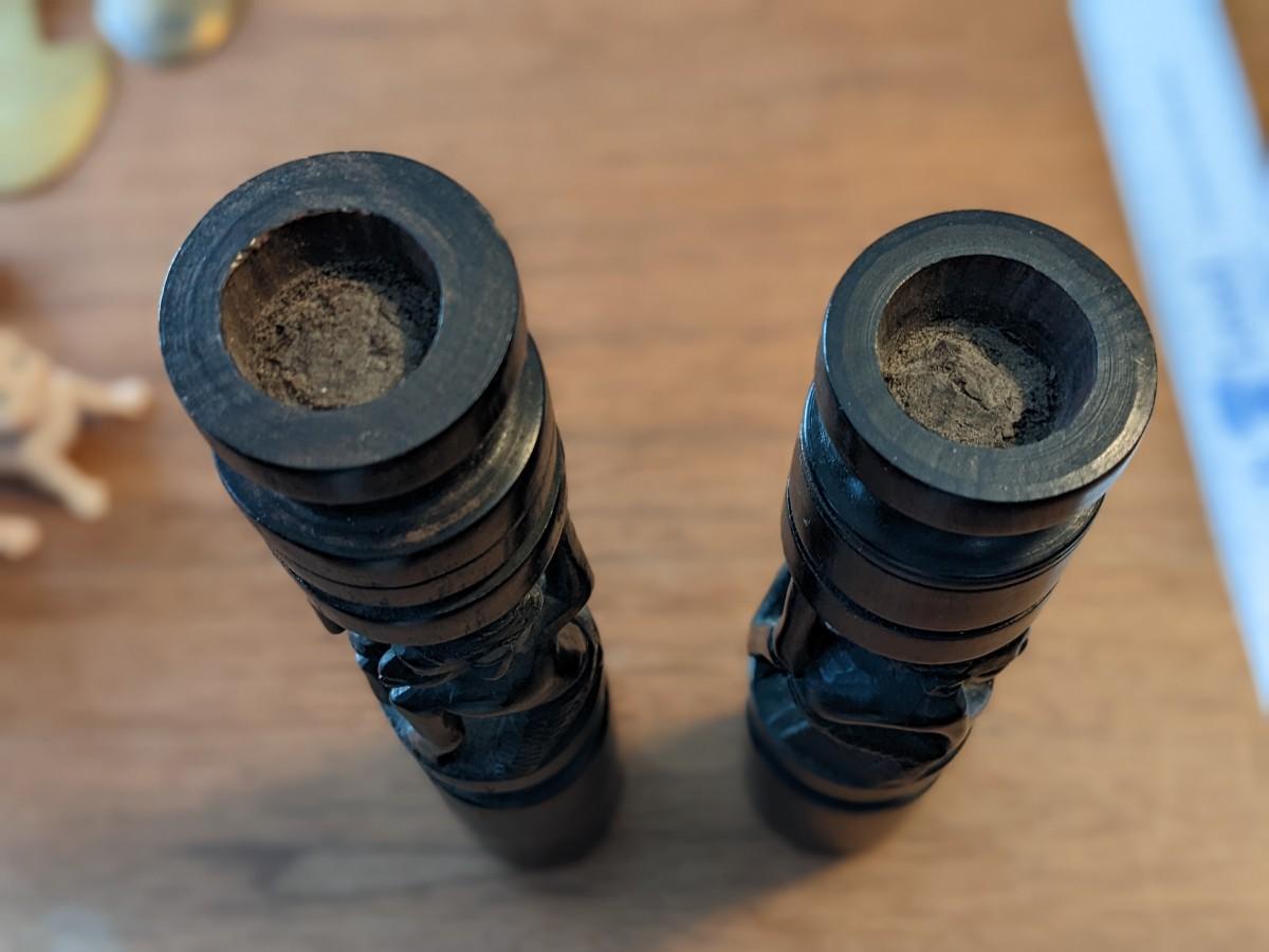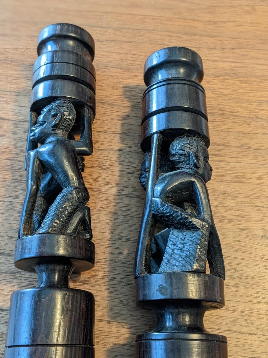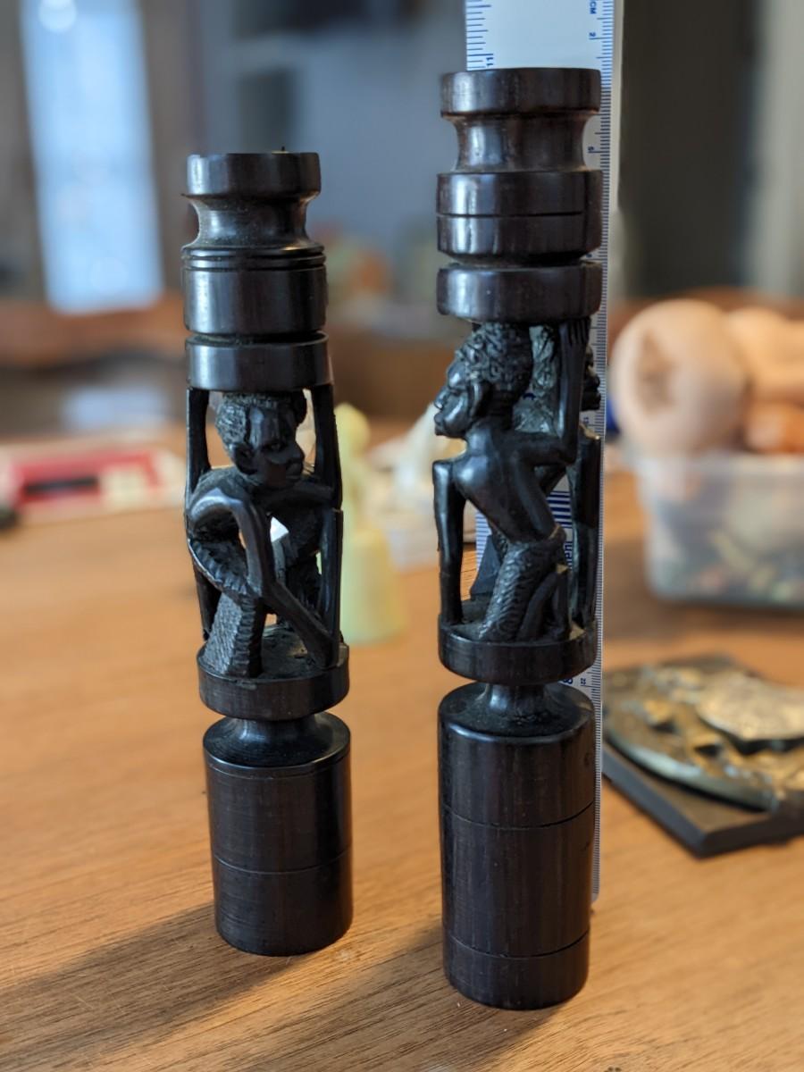 Vintage African Ebony Wood Carved Candle Stick Holders