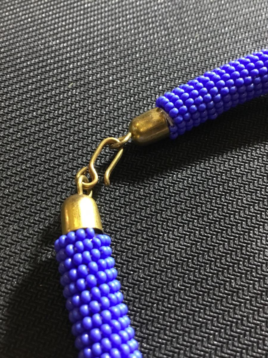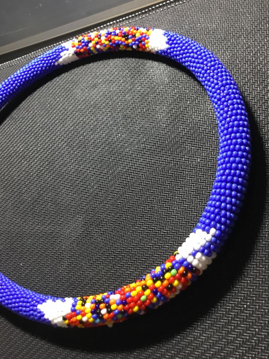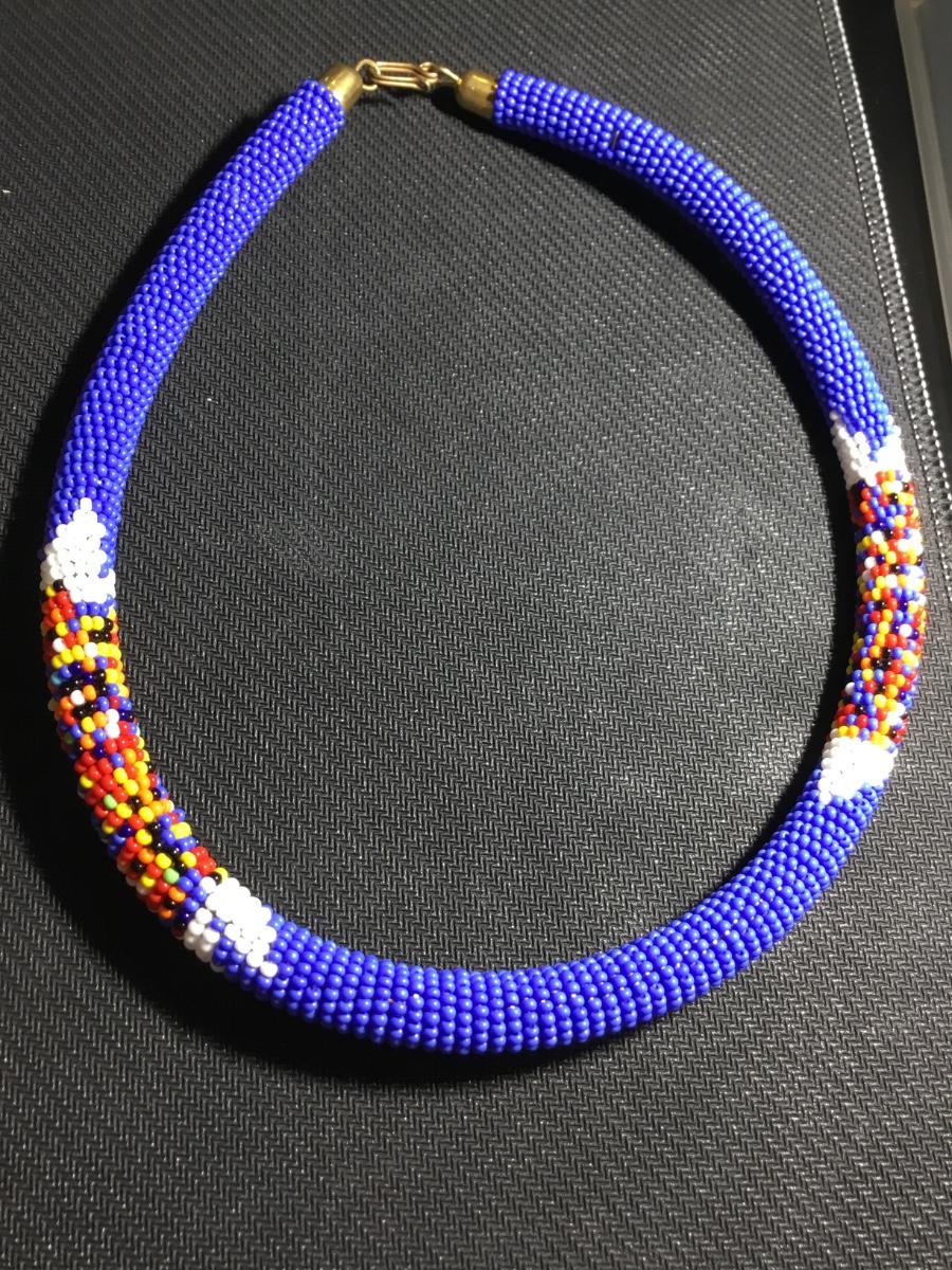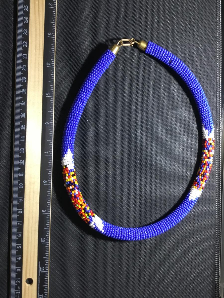 Vintage African style type blue beaded with colorful beaded choker statement necklace
