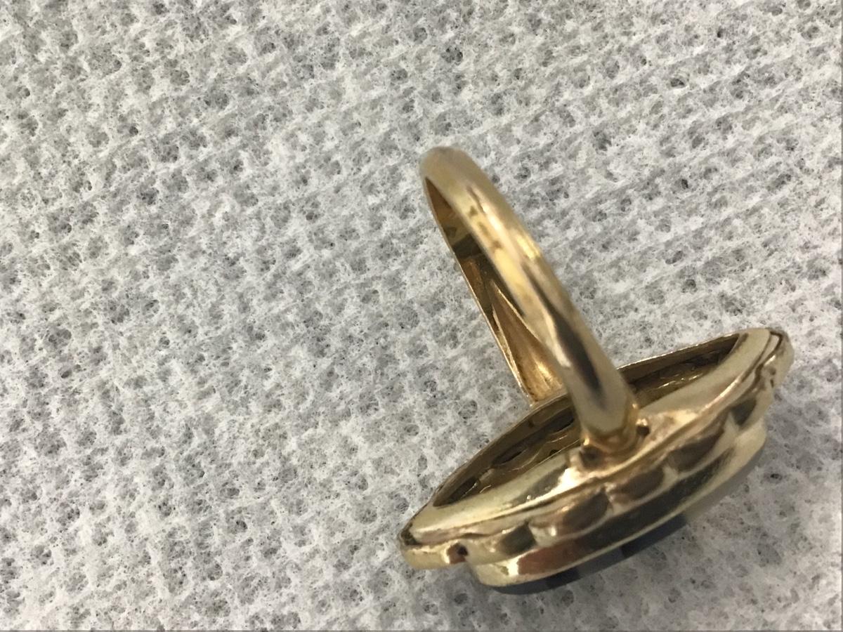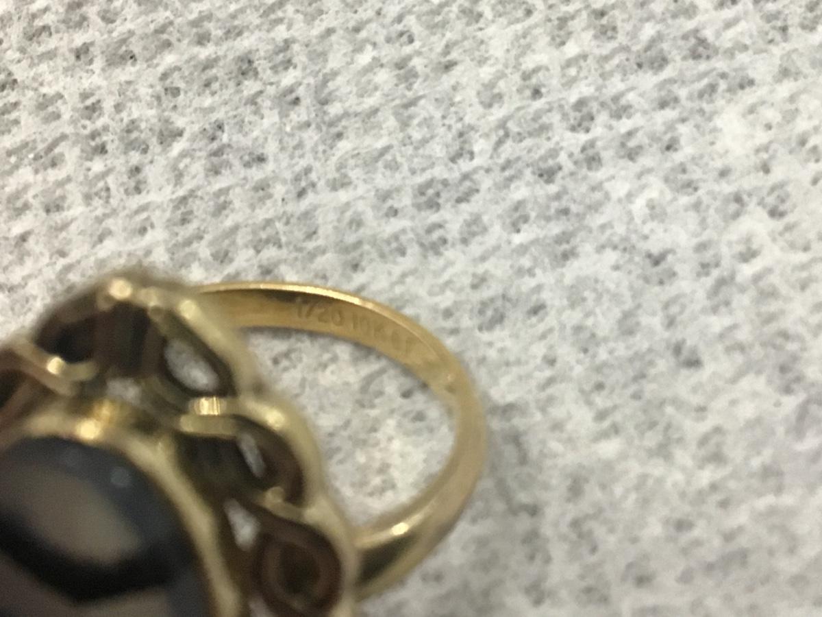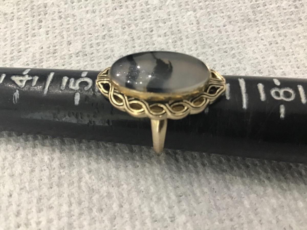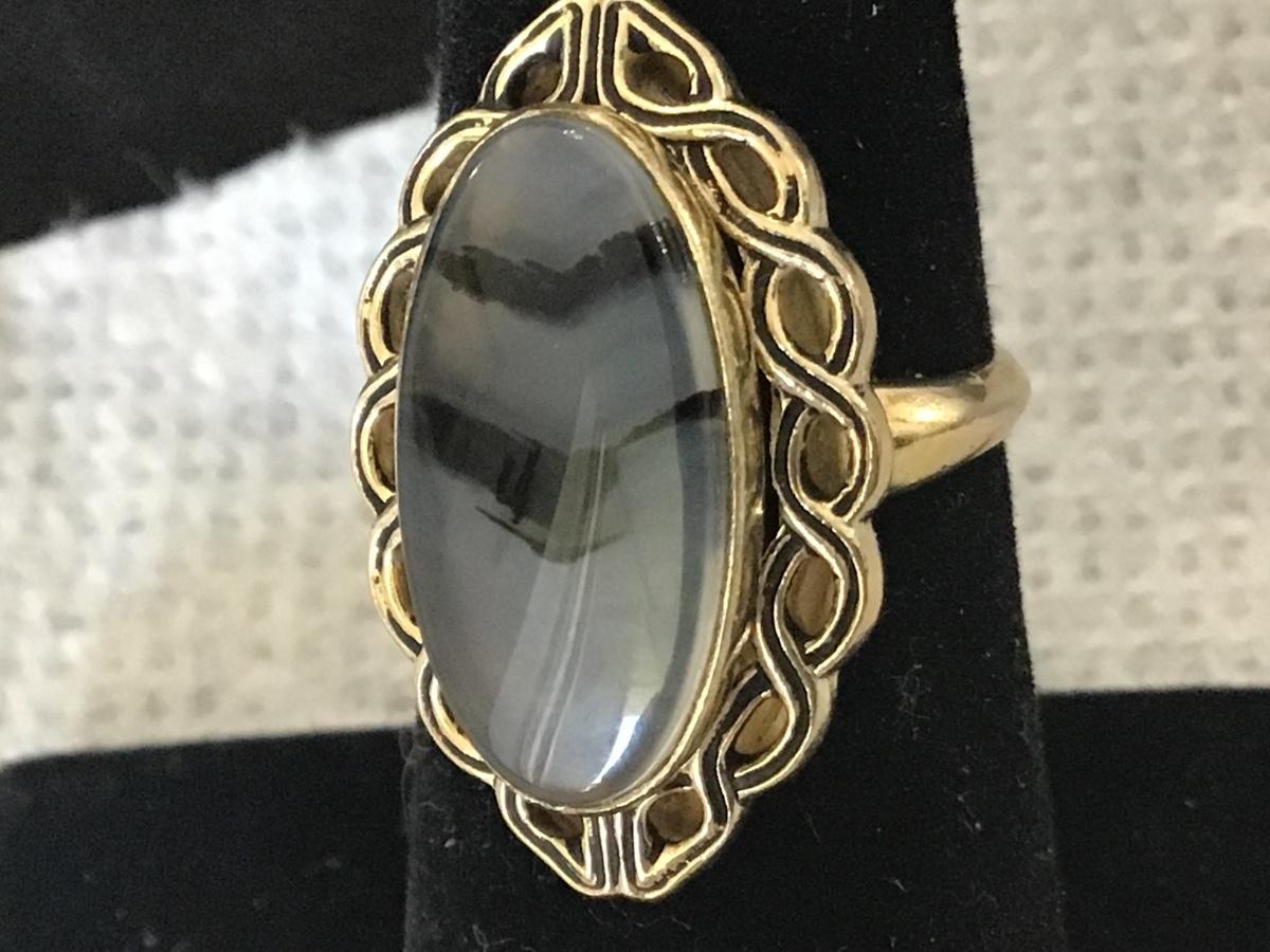 Vintage Agate 10K Gold Filled Ring - White & Brown stone w/ Ornate Band - Hallmar Oval Polished Stone