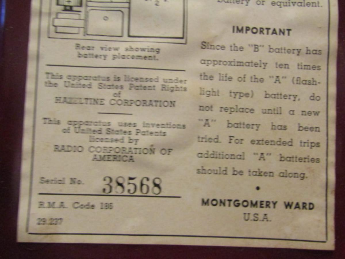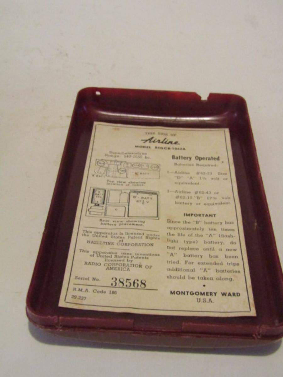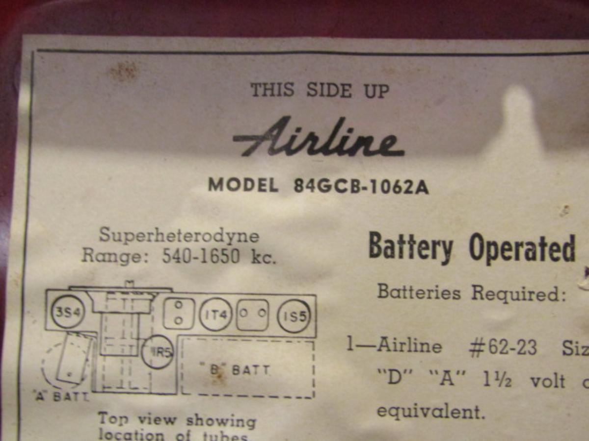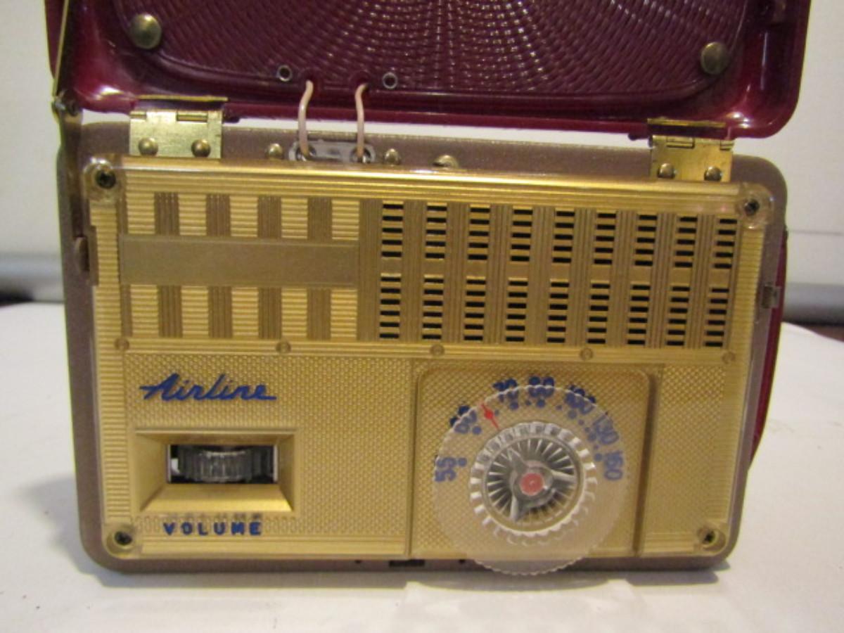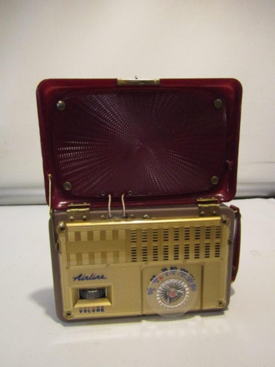 Vintage Airline Portable Radio- Model 84GCB-1062A- Item is Untested. Back cover is loose and does not snap on properly.