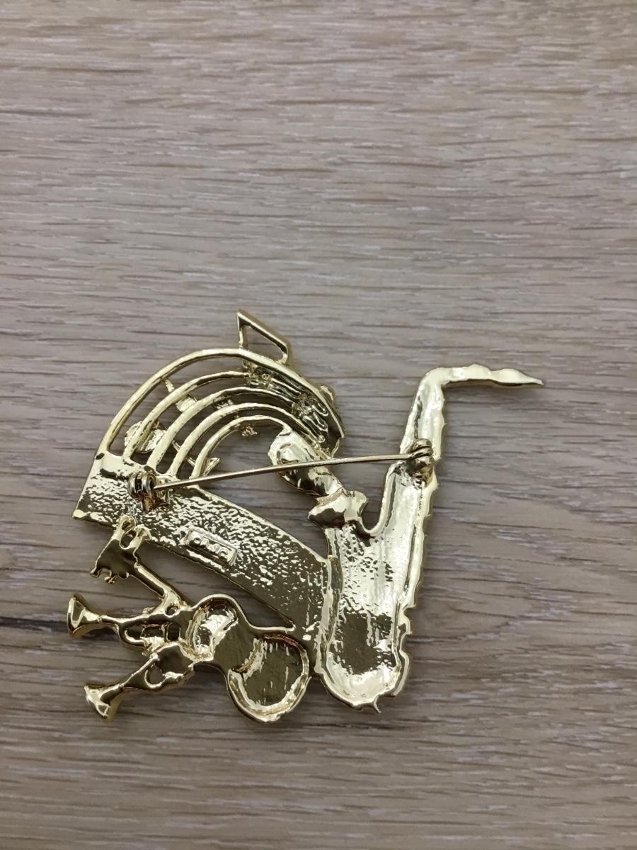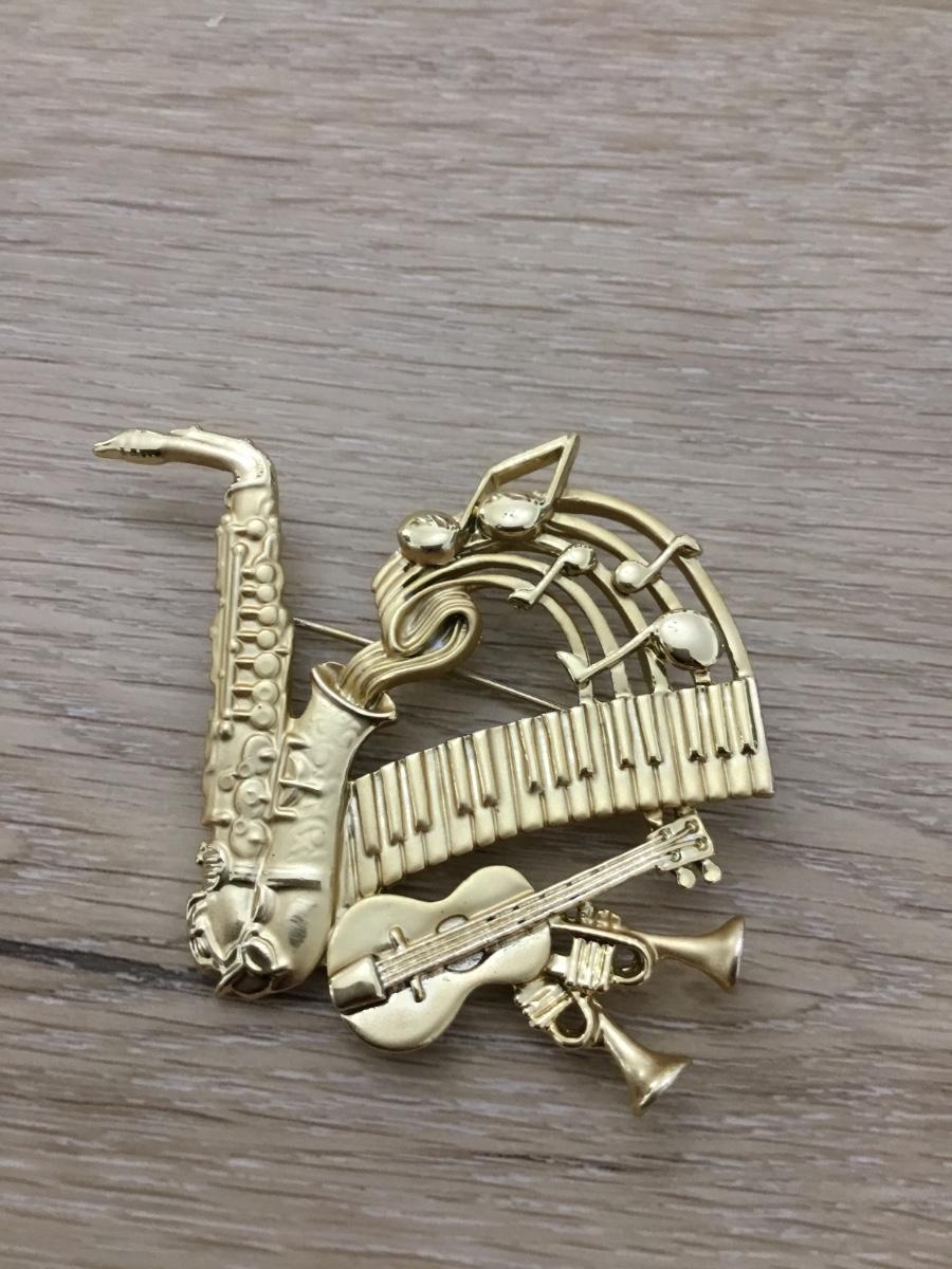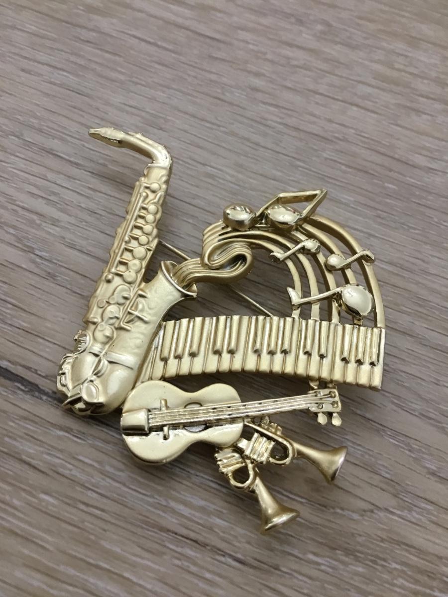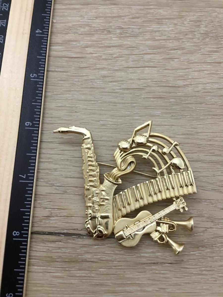 Vintage AJC Gold Tone Music Pin Brooch Keyboard, Saxophone, Guitar, Horns