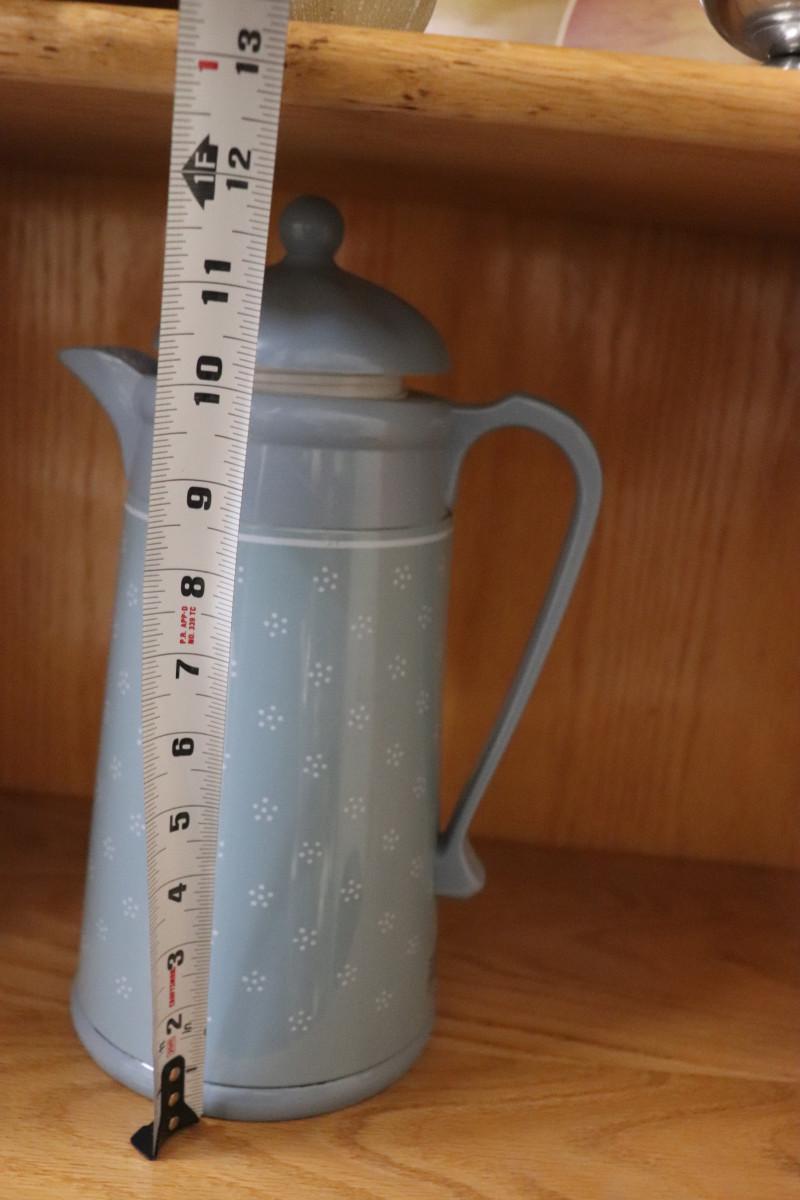 Vintage AK Das Blue Thermal Coffee Carafe Thermos Polka Dot Cluster Flowers MCM