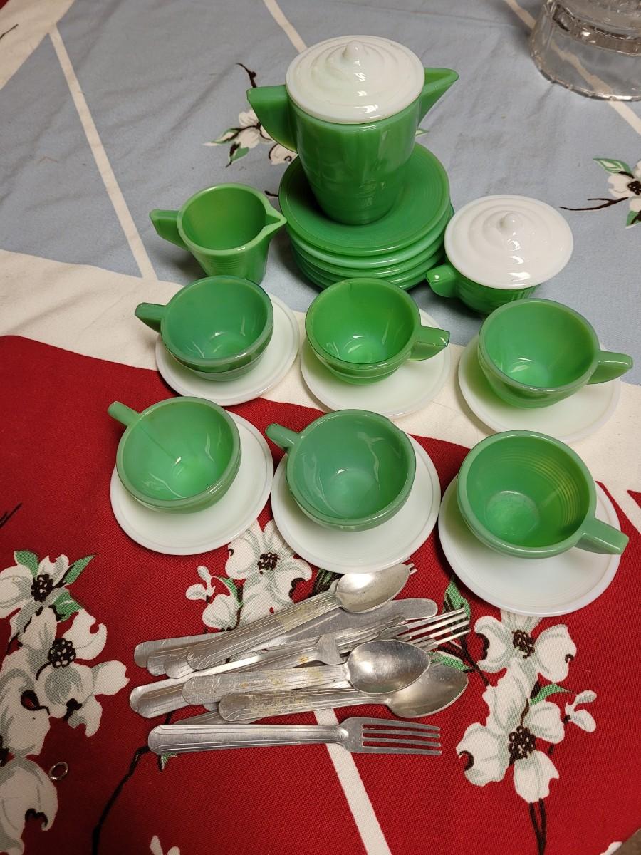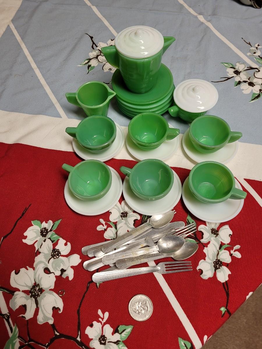 Vintage Akro Agate Jadeite Green Children's Tea Set