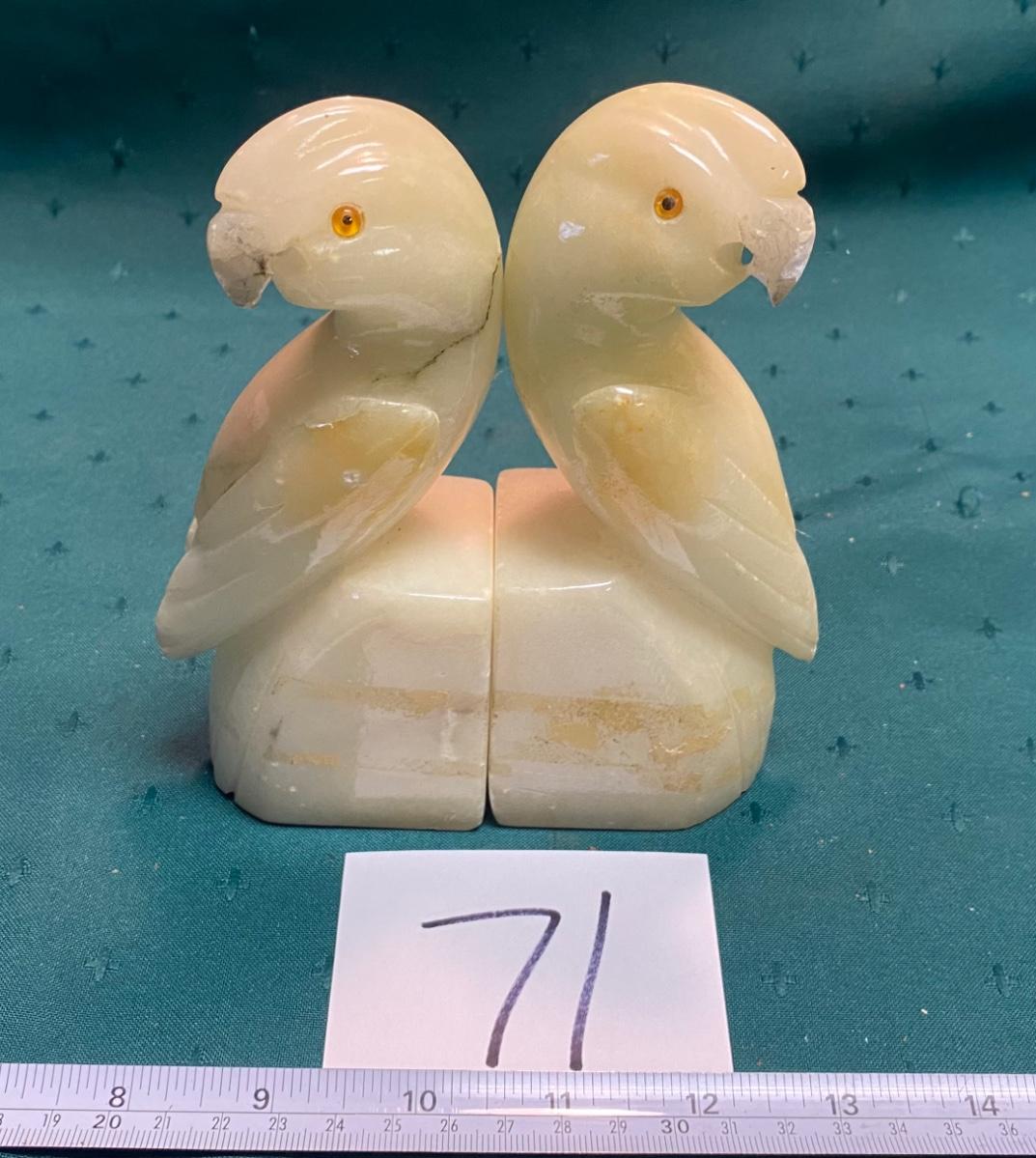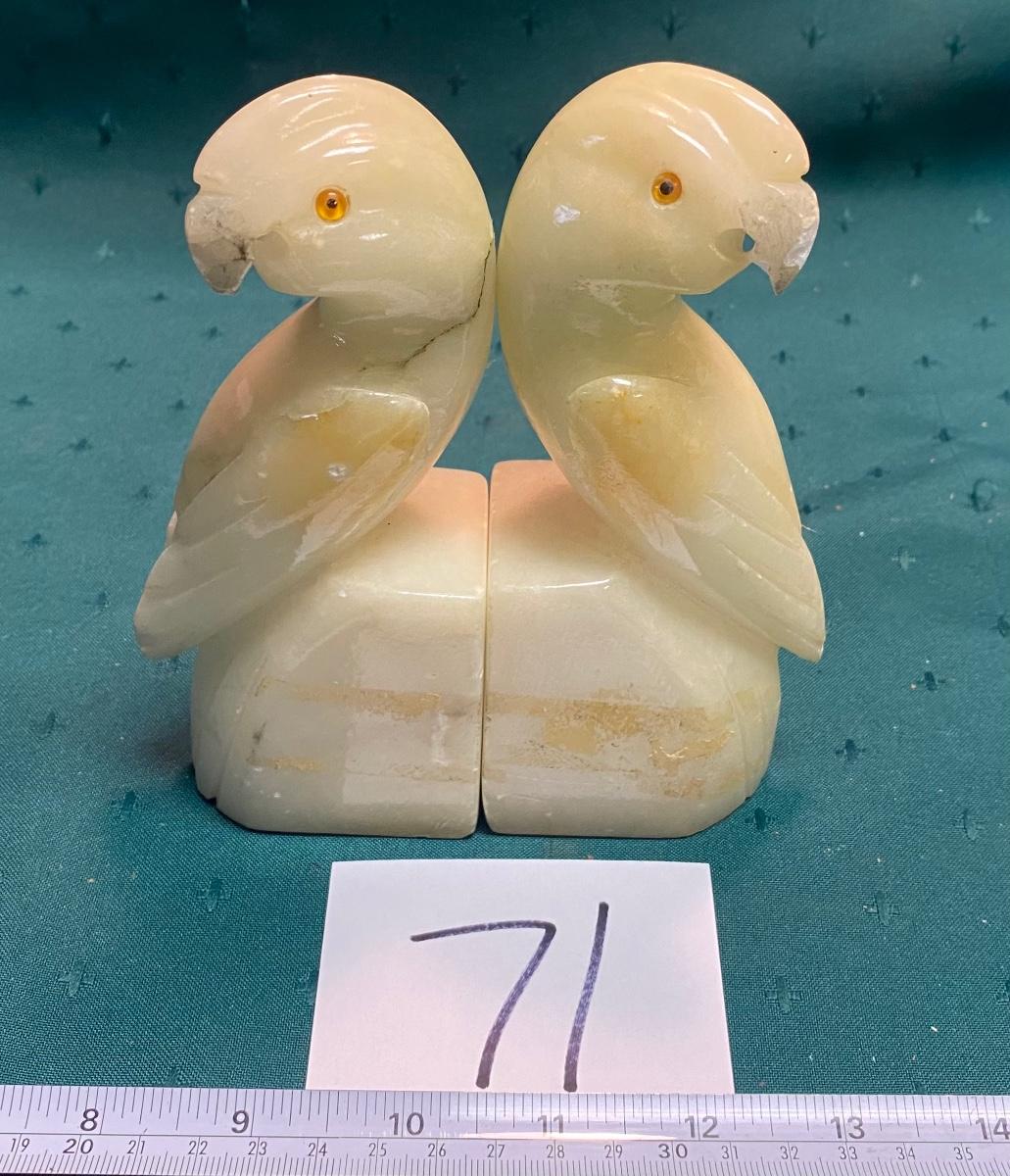 Vintage Alabaster Parrot Bookends