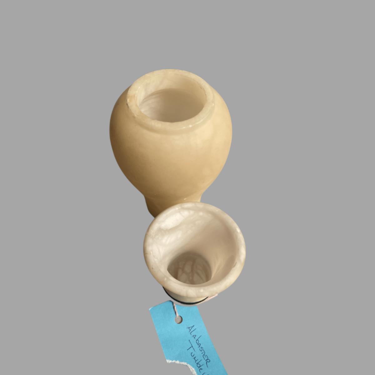 This is a beautiful set that the top converts to a cup for drinking. Measures 8"