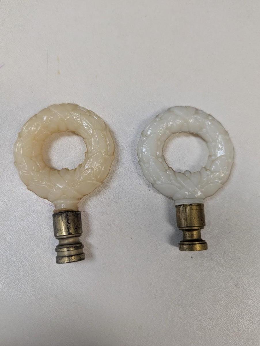 Vintage Alacite Glass Aladdin Wreath Ring Lamp Finials