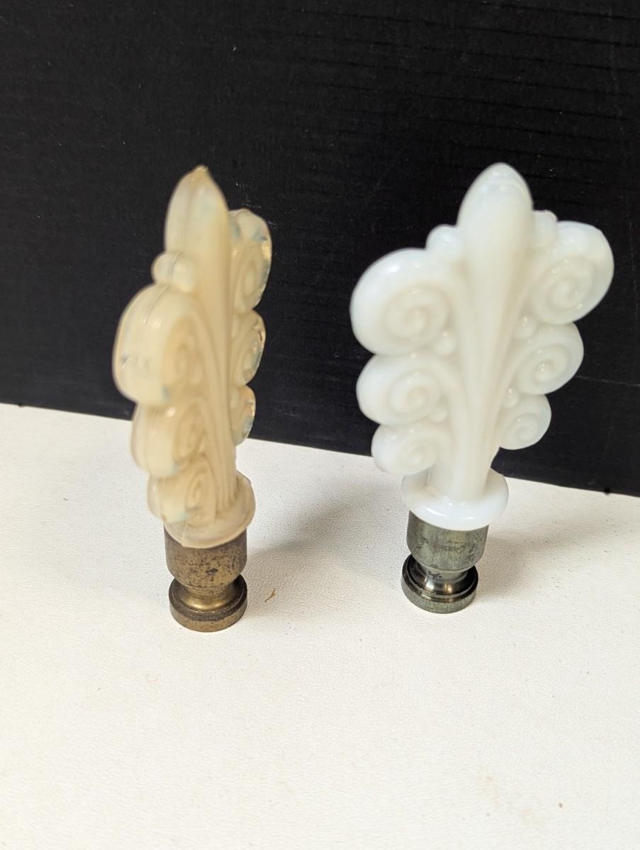 Vintage Aladdin Alacite Triple Scroll Ivory Lamp Finials