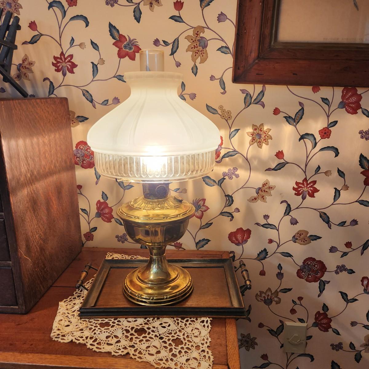 Vintage Aladdin Model 11 Converted Brass Table Oil Lamp