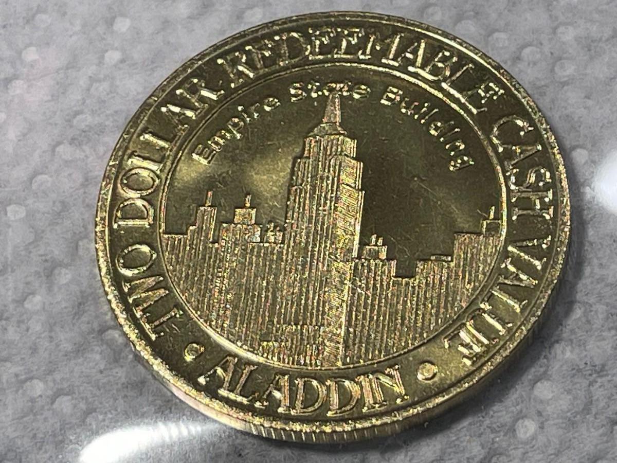 Vintage Aladdin Resort & Casino $2 Slot Gaming Token Las Vegas Nevada (Empire State Building) Choice BU Condition. FREE DOMESTIC SHIPPING.