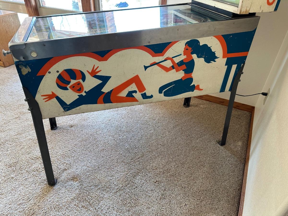 2 player pinball machine. Politically incorrect but endless fun, super fast playing pinball action from Bally. Many players favorite machine from 1975 Great all round cosmetic condition as follows near mint art glass, very good playfield and cabinet. Game play like you remember from the 1970's win extra balls, free games and a over the top buzzer to let everyone in the arcade (now your home) know you rolled the machine over
