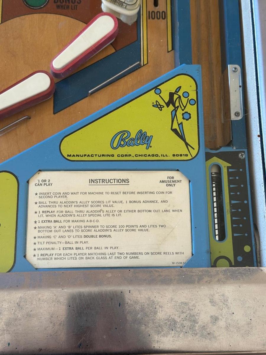 1975 “ALADDIN’S CASTLE” PINBALL MACHINE BY BALLY