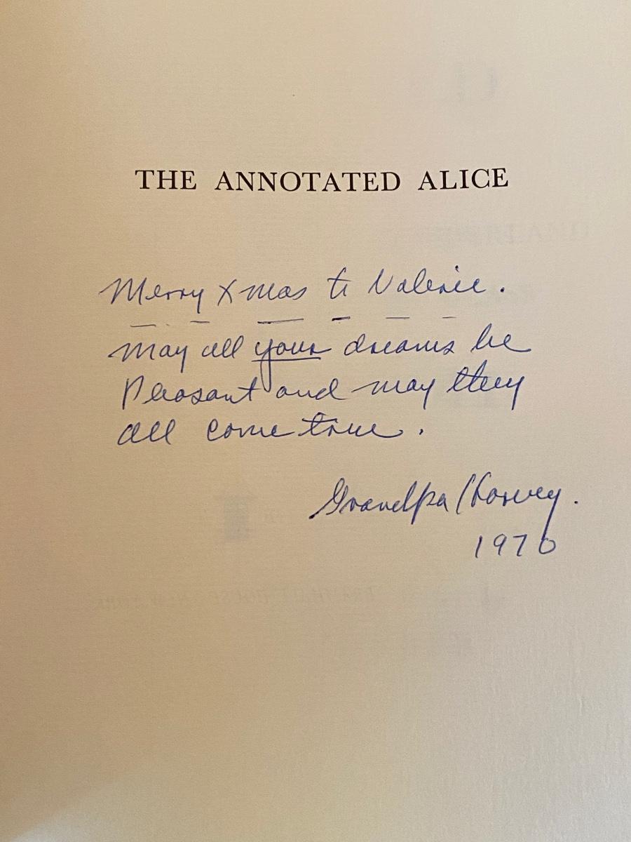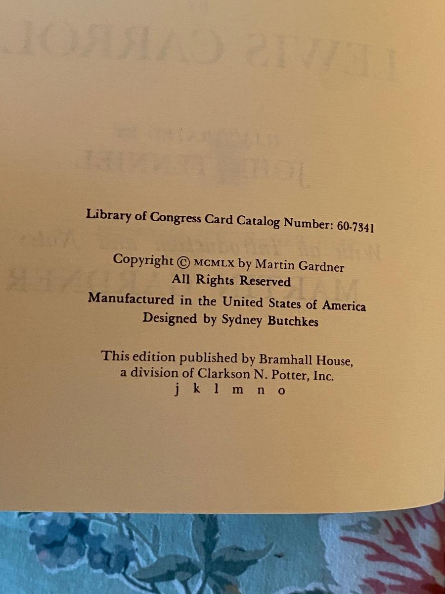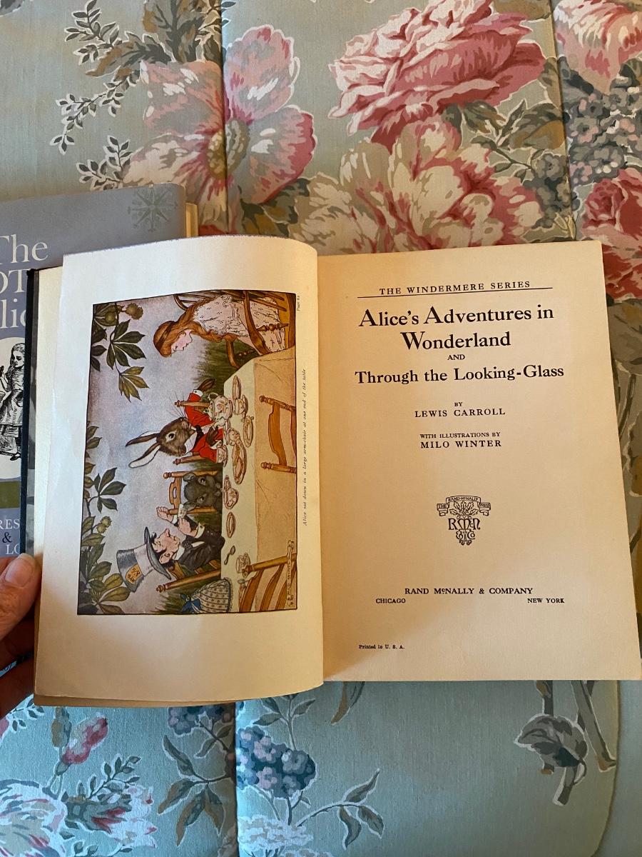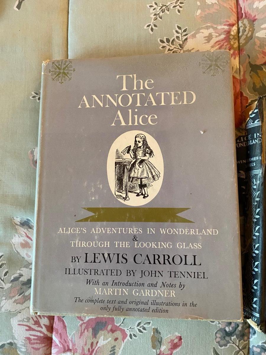 Vintage Alice in Wonderland & The Annotated Alice Hard Back Books. Some wear from age. One was given as a Christmas gift and is inscribed.