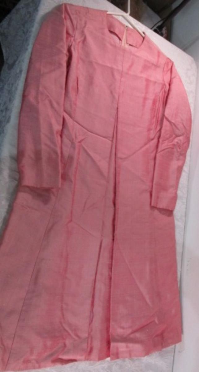 Has a front pleat, shoulder to hem 38-1/2", Bust 38", waist 34" - M
