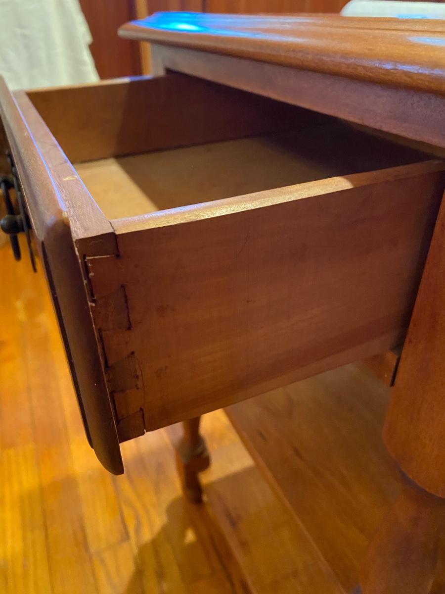 Vintage all wood nightstand with drawer and two shelves, maple. Approx 29 x 14 x 28h, very good condition.