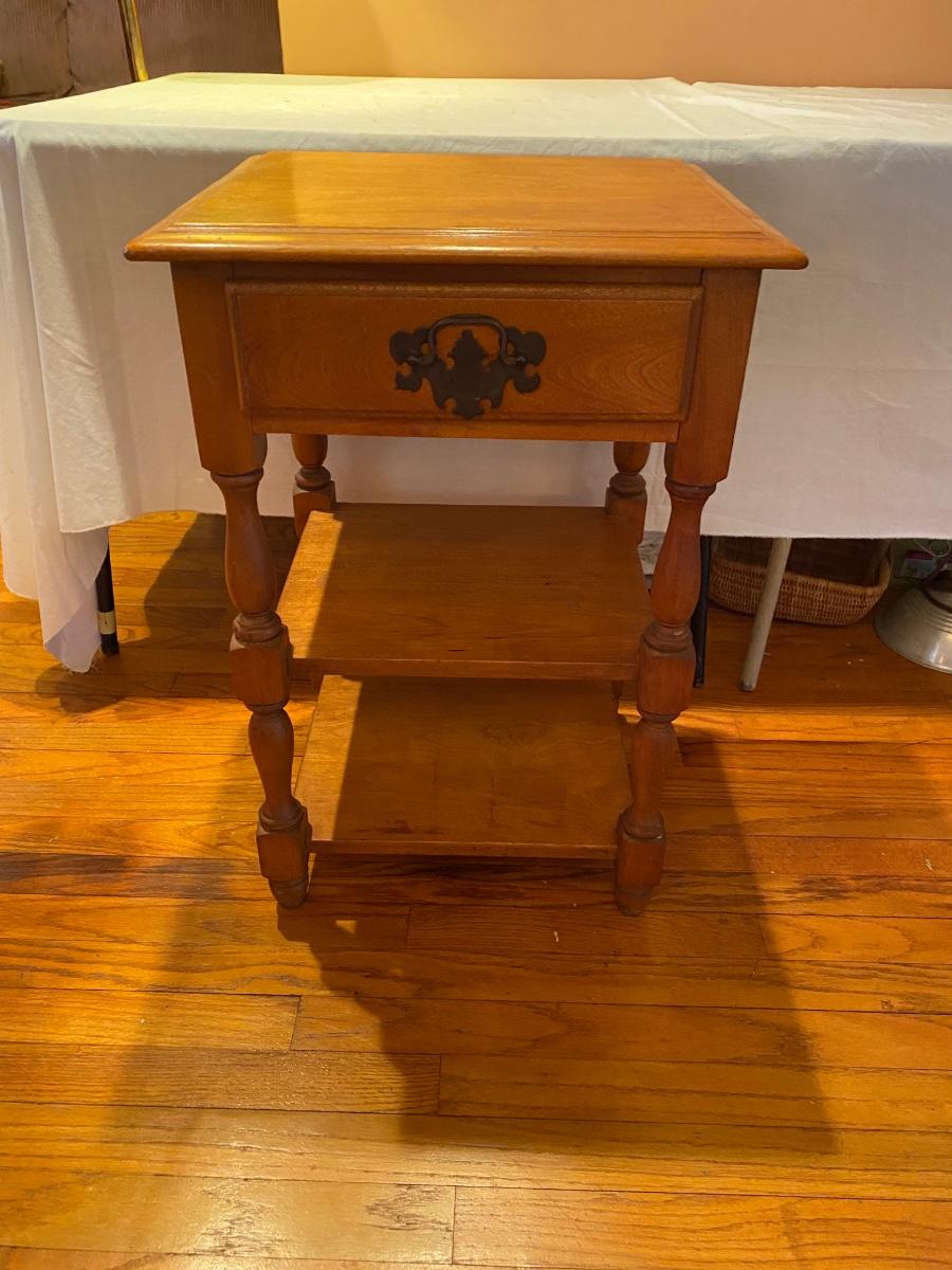 Vintage all wood nightstand with drawer and two shelves