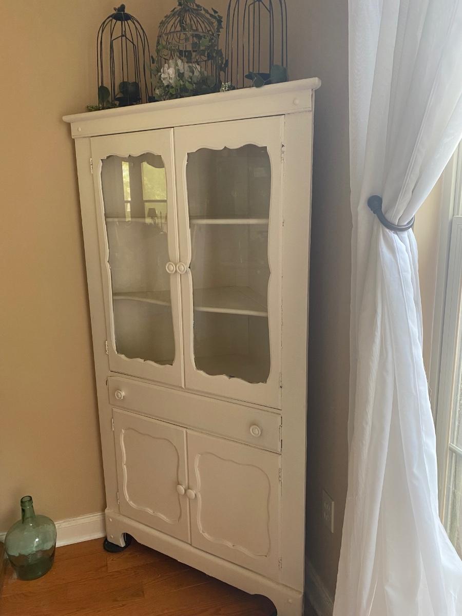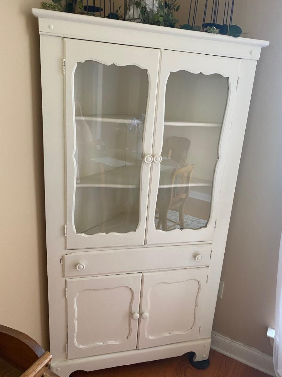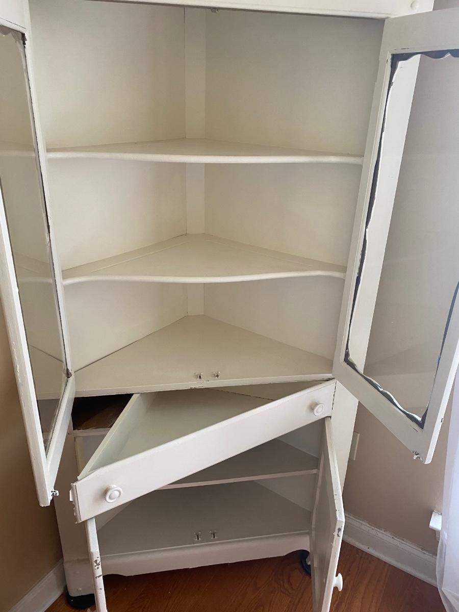 Vintage all wood white corner cupboard