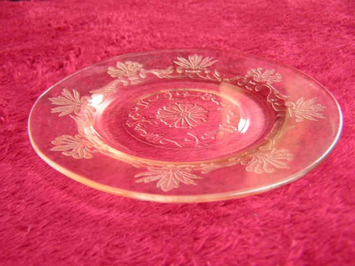 Vintage almost clear glass bread plate, just a hint if pink. Possibly Art Deco style pressed glass. About 6-1/4" dia