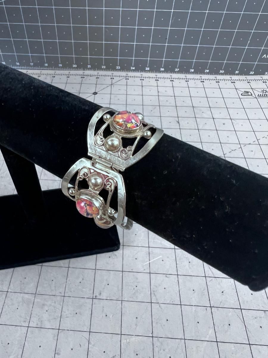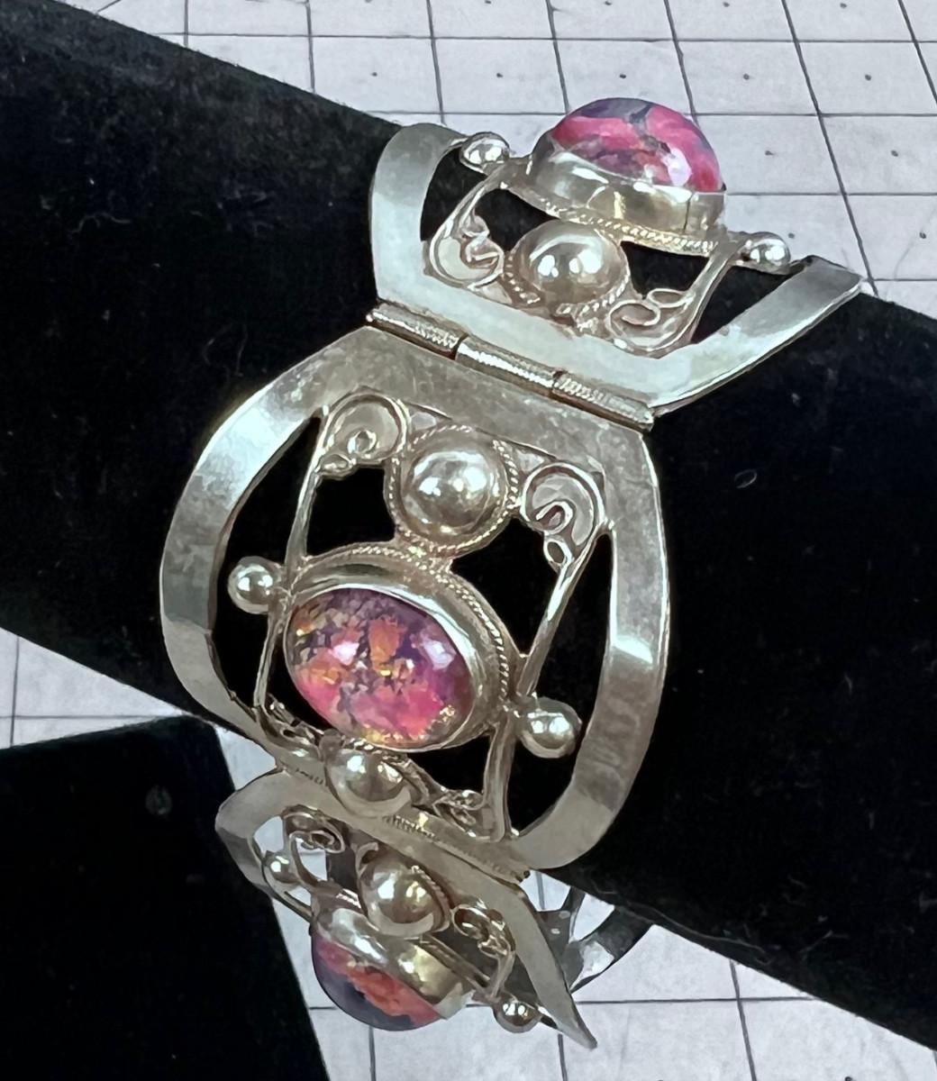 Vintage Alpaca Mexican Bracelet Foil Faux Stone