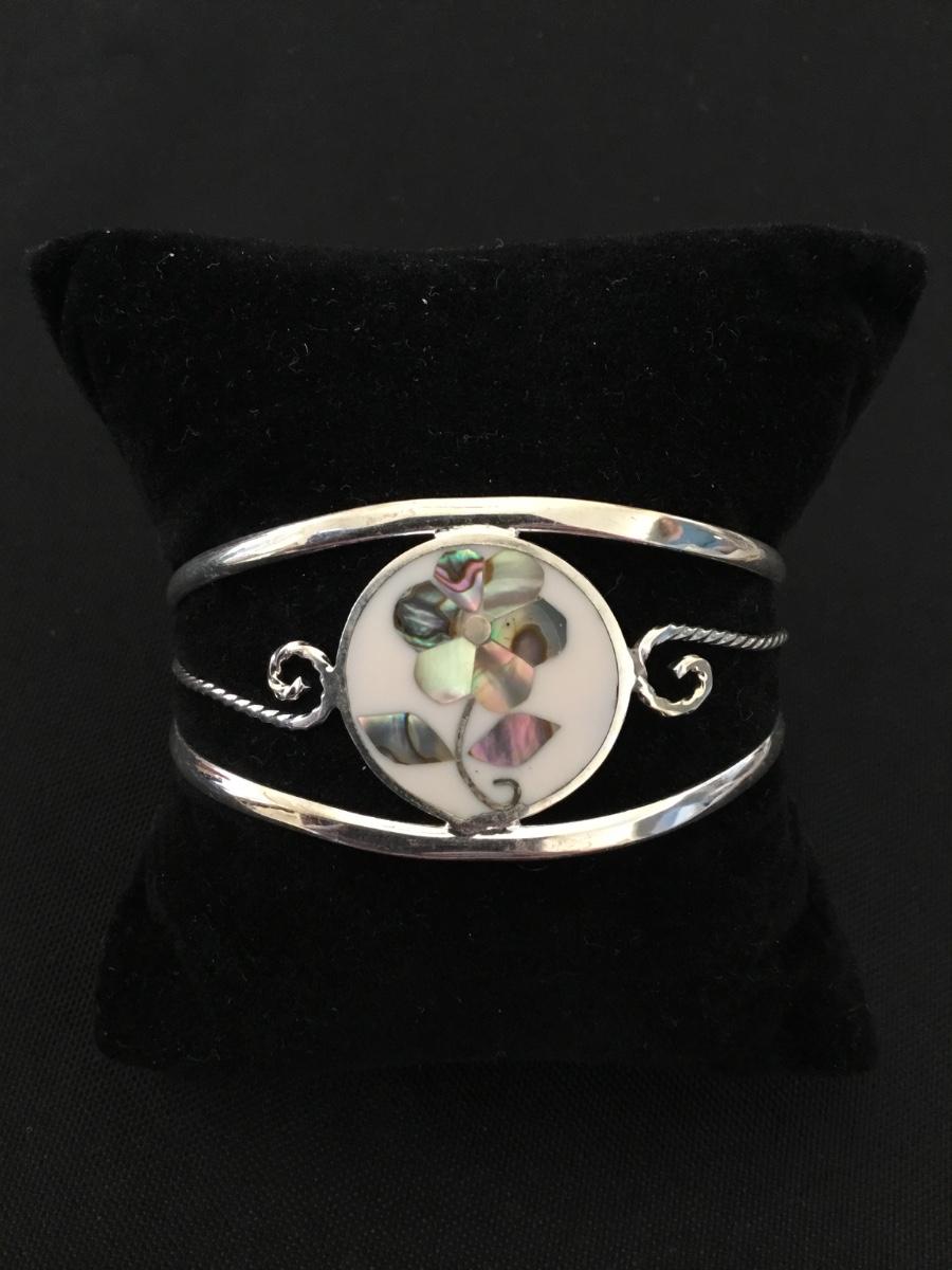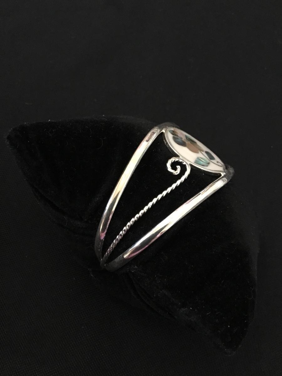 Vintage Alpaca Mexico, silver shell inlay bracelet