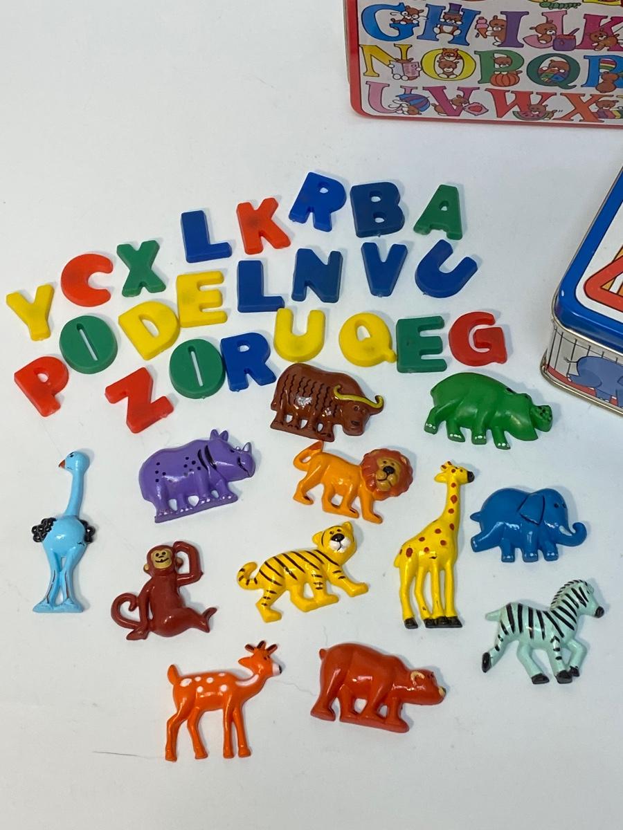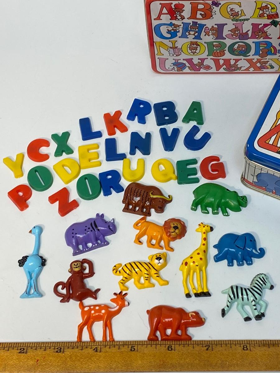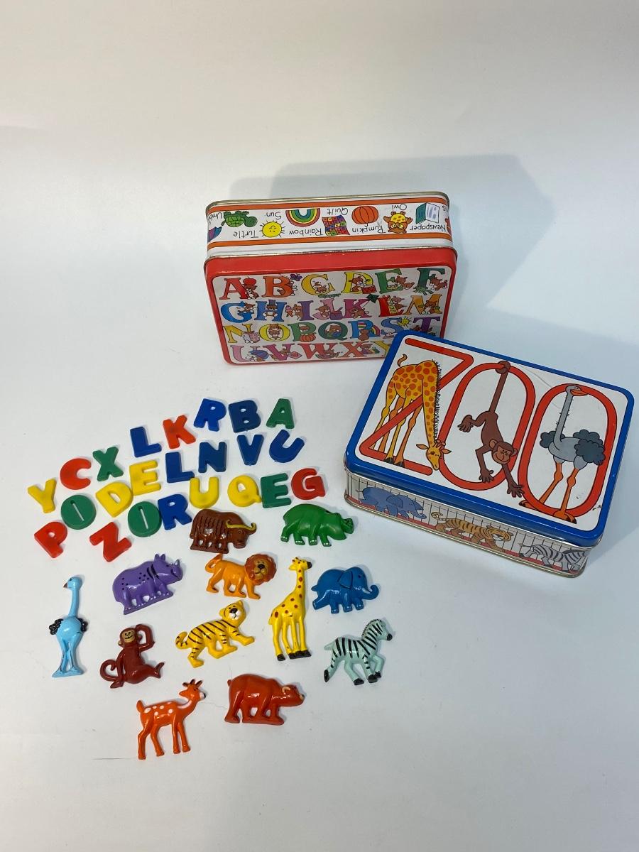 Vintage Alphabet & Zoo Animal Magnets with Small Matching Tins