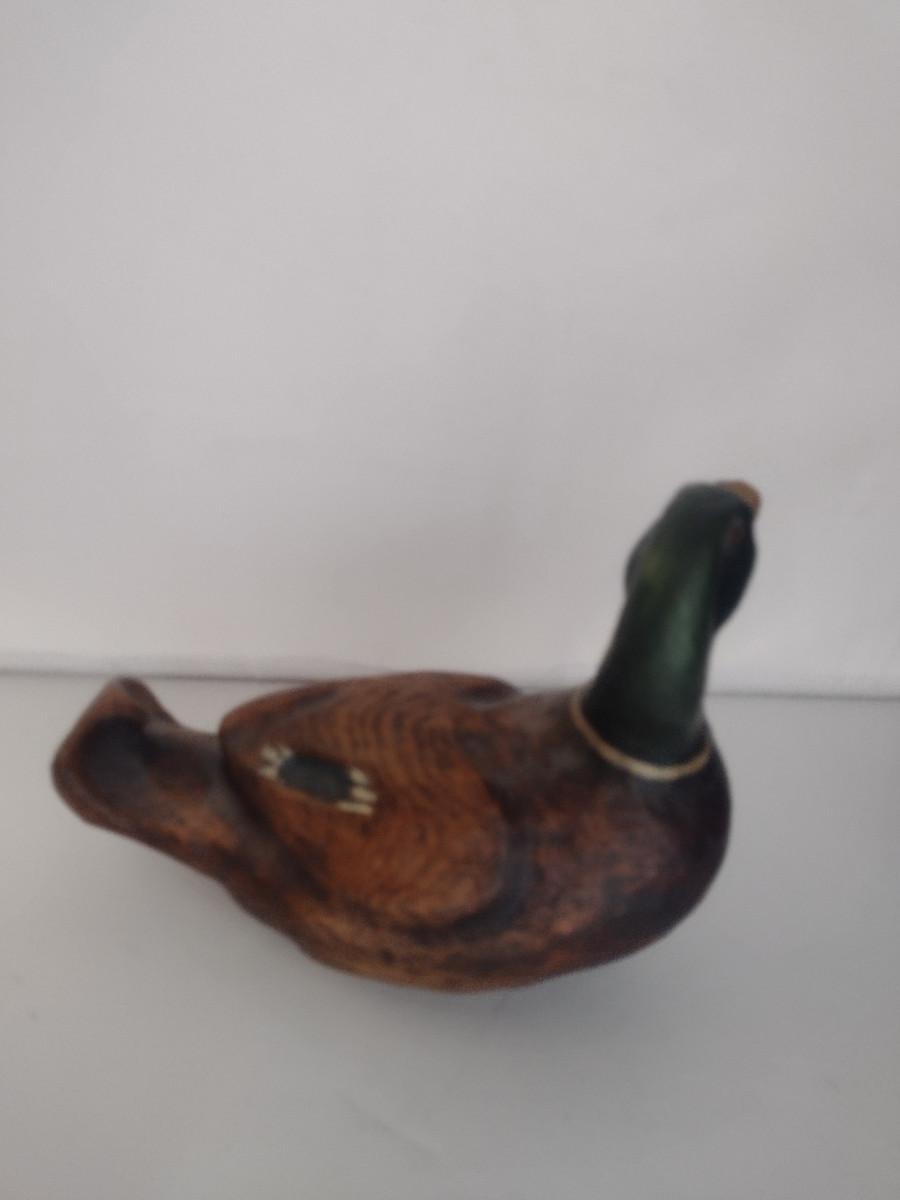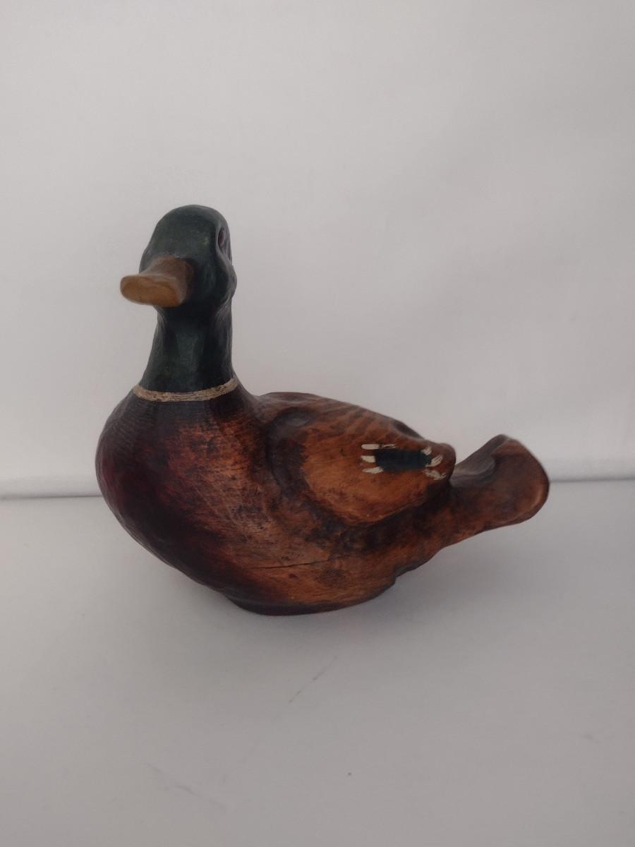 Vintage Alt Weisskopf Schnitzerei Hand Carved Wooden Mallard Duck- Approx 7 1/4" Tall, 8 1/8" Long
