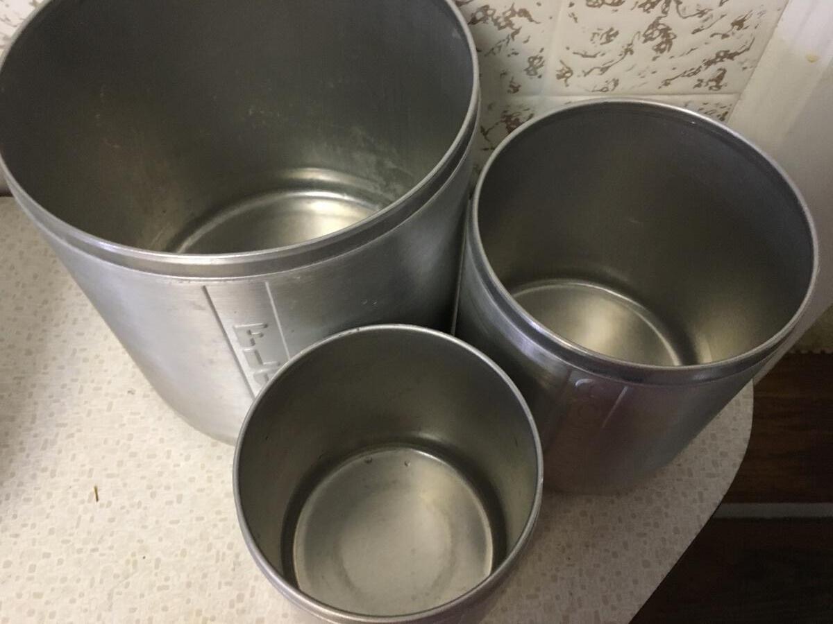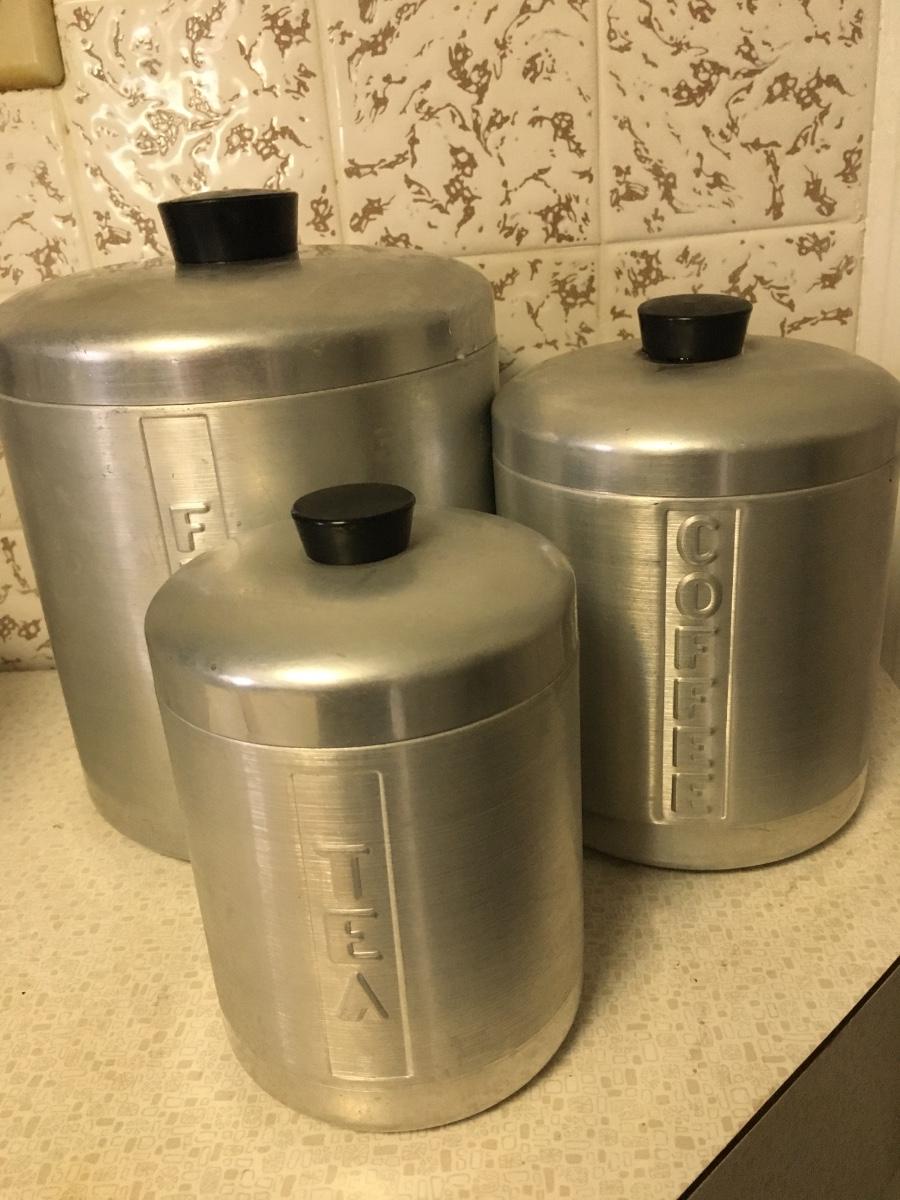 Set of 3. It's missing the Sugar cannister, but really.... should you be eating sugar anyway? This set solves your dilemma. In overall good condition. Not banged up or stained. Just needs a new home.