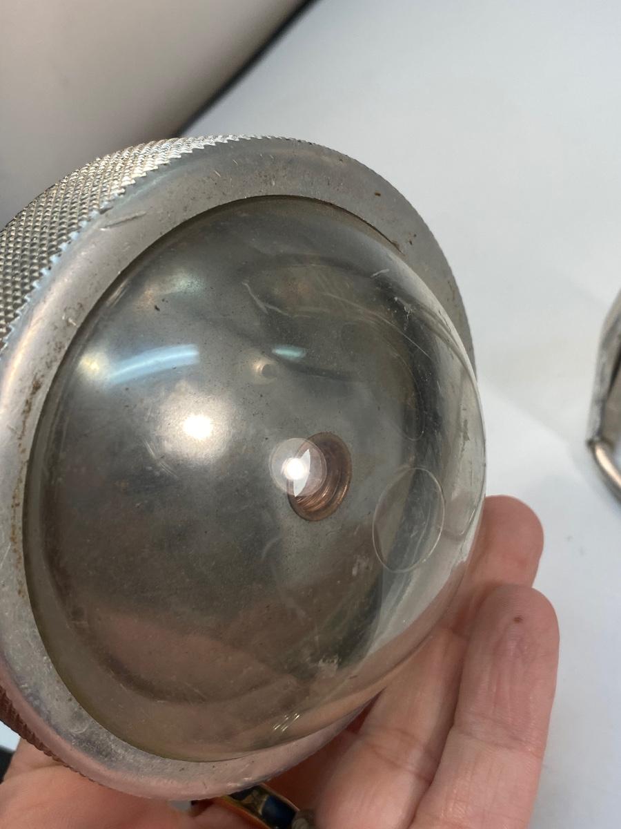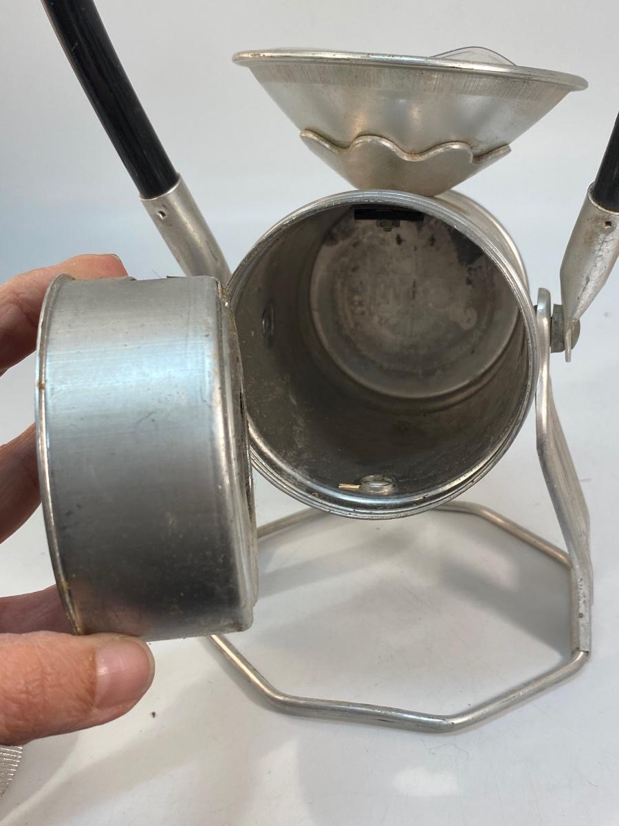 Vintage Aluminum Ecolite Two Way Lantern Flashlight. Battery operated. Bulb can go in either spot. Untested. There is a small storage stash spot behind the battery compartment. In good vintage condition.