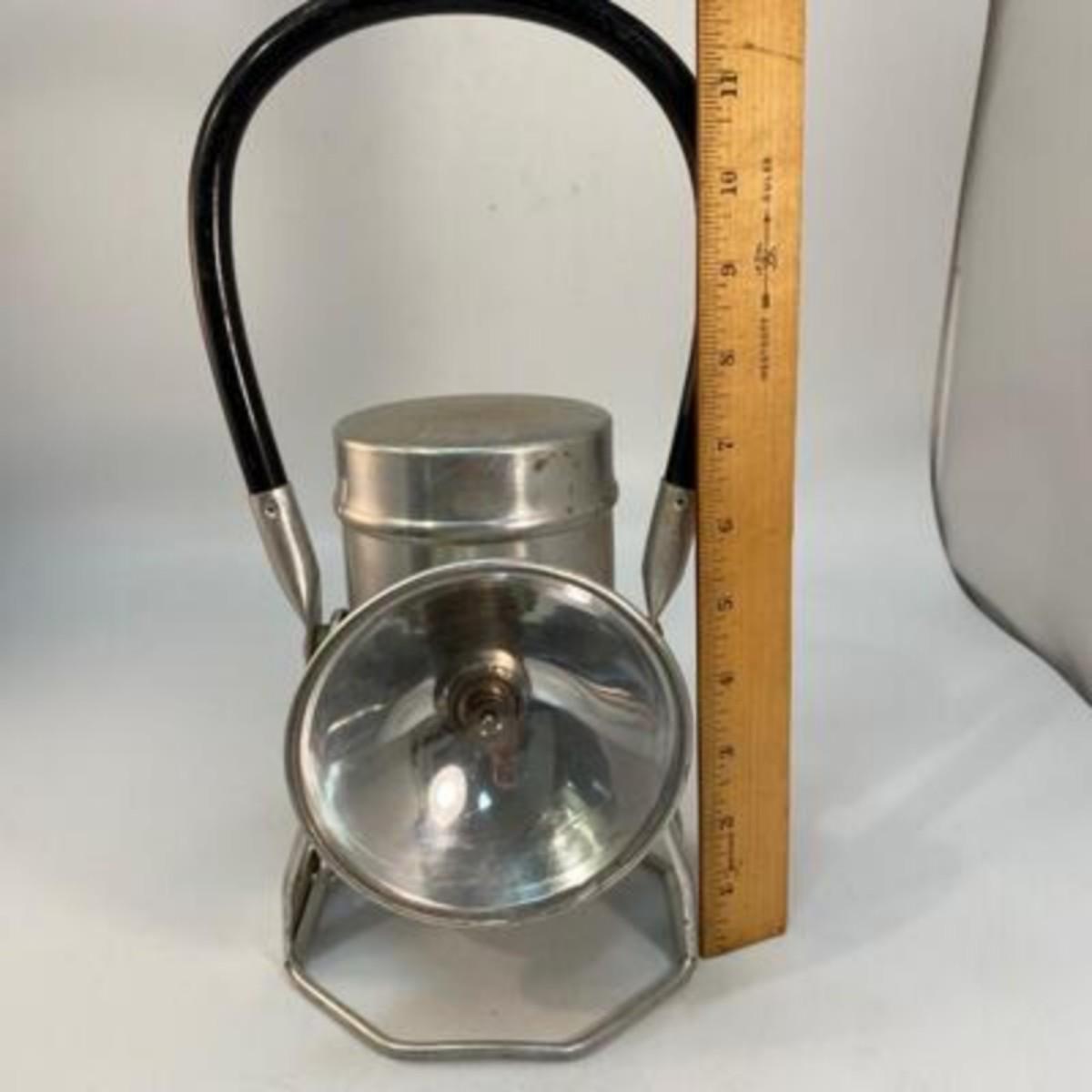 Vintage Aluminum Ecolite Two Way Lantern Flashlight. Battery operated. Bulb can go in either spot. Untested. There is a small storage stash spot behind the battery compartment. In good vintage condition.