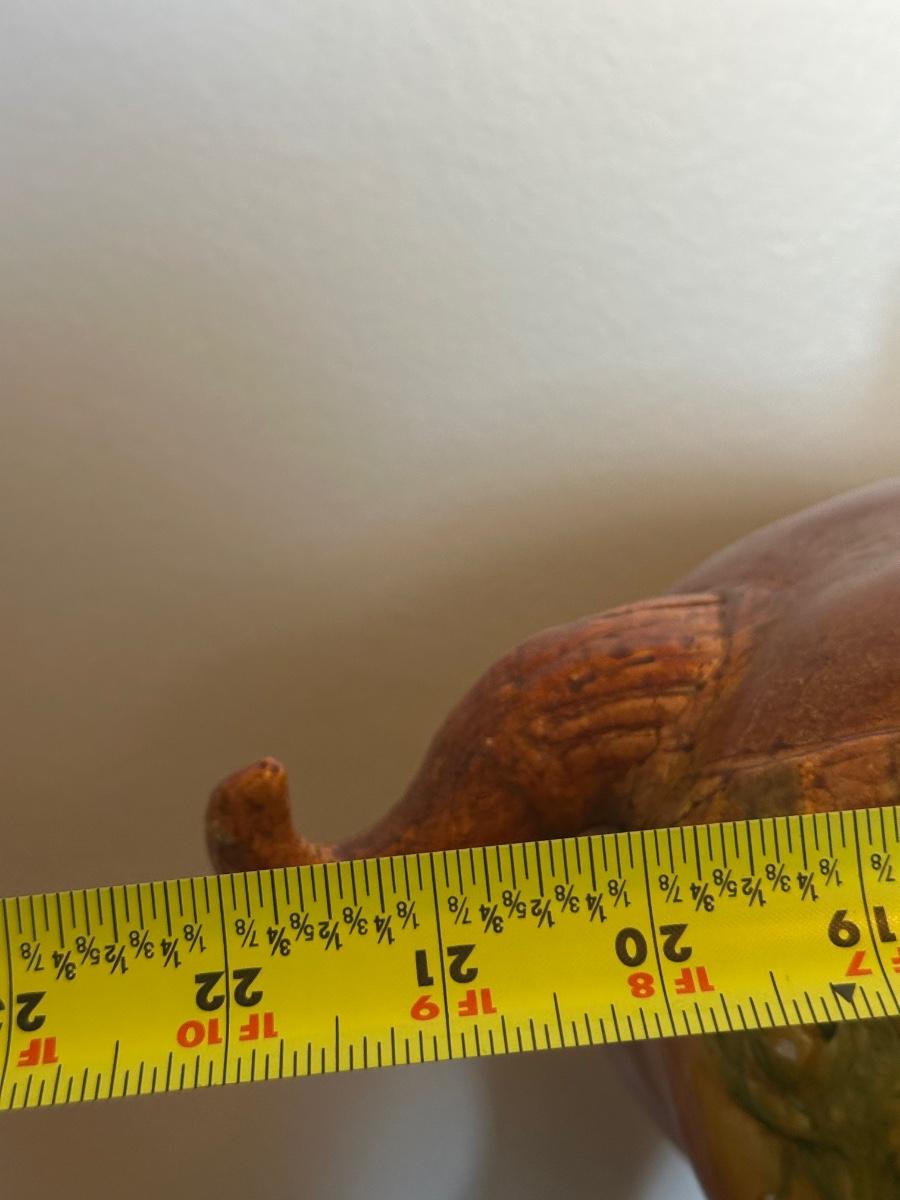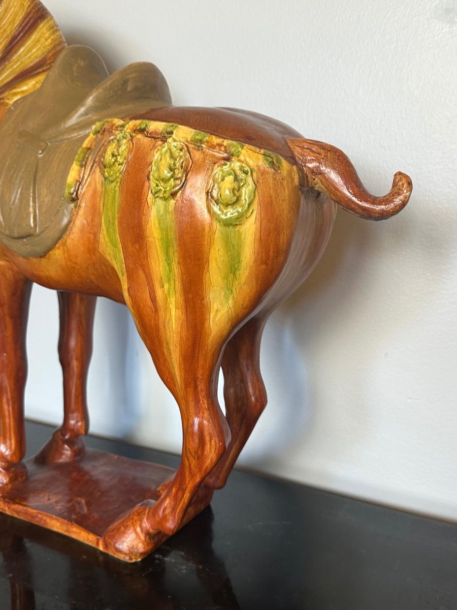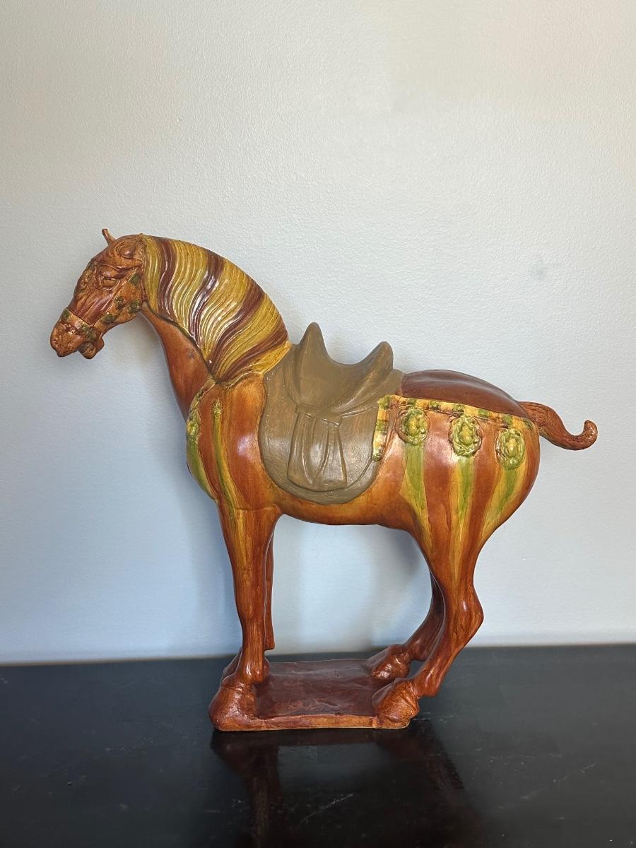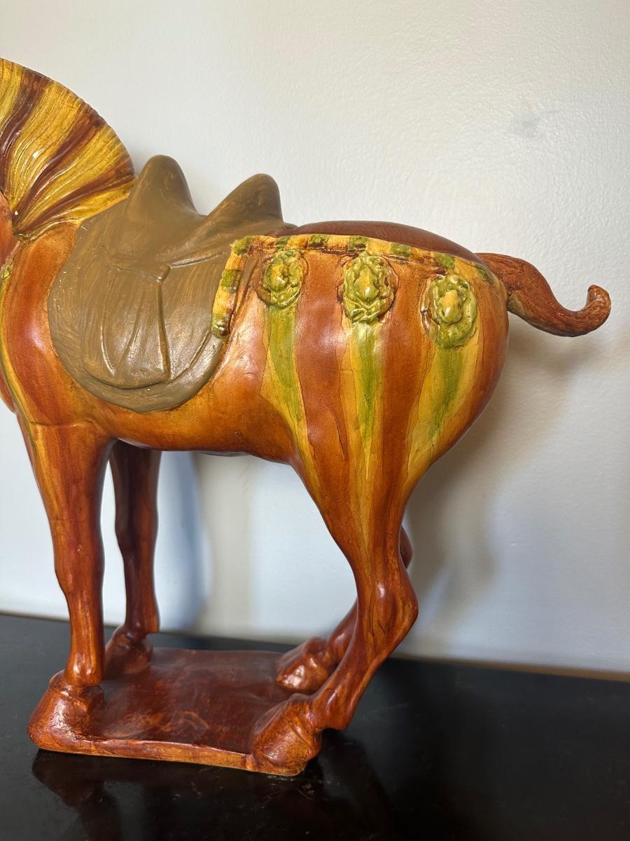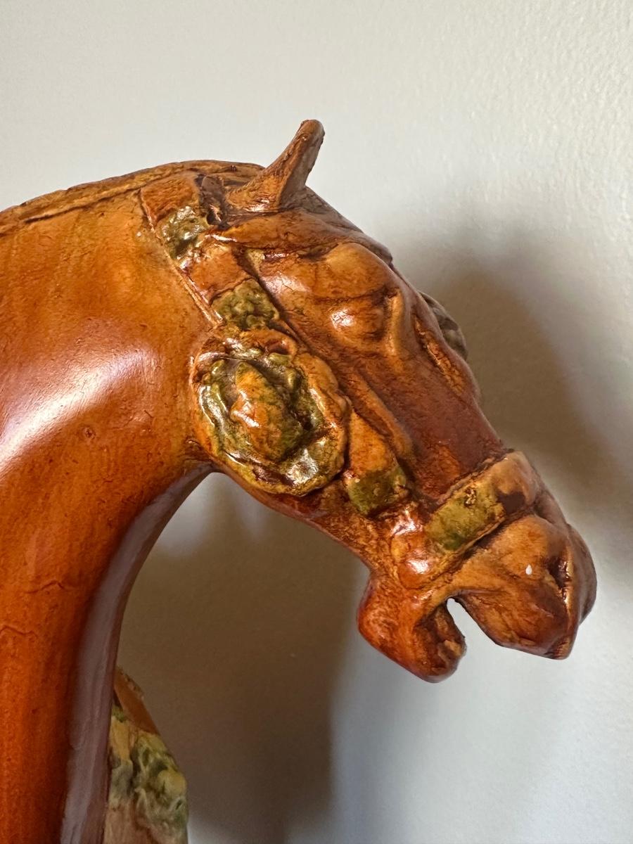 Vintage hand-painted ceramic horse marked “ALVA © 1975” on base. Approx. 20–21” tall. Minor glaze chips and surface wear consistent with age. See photos for details and condition.
