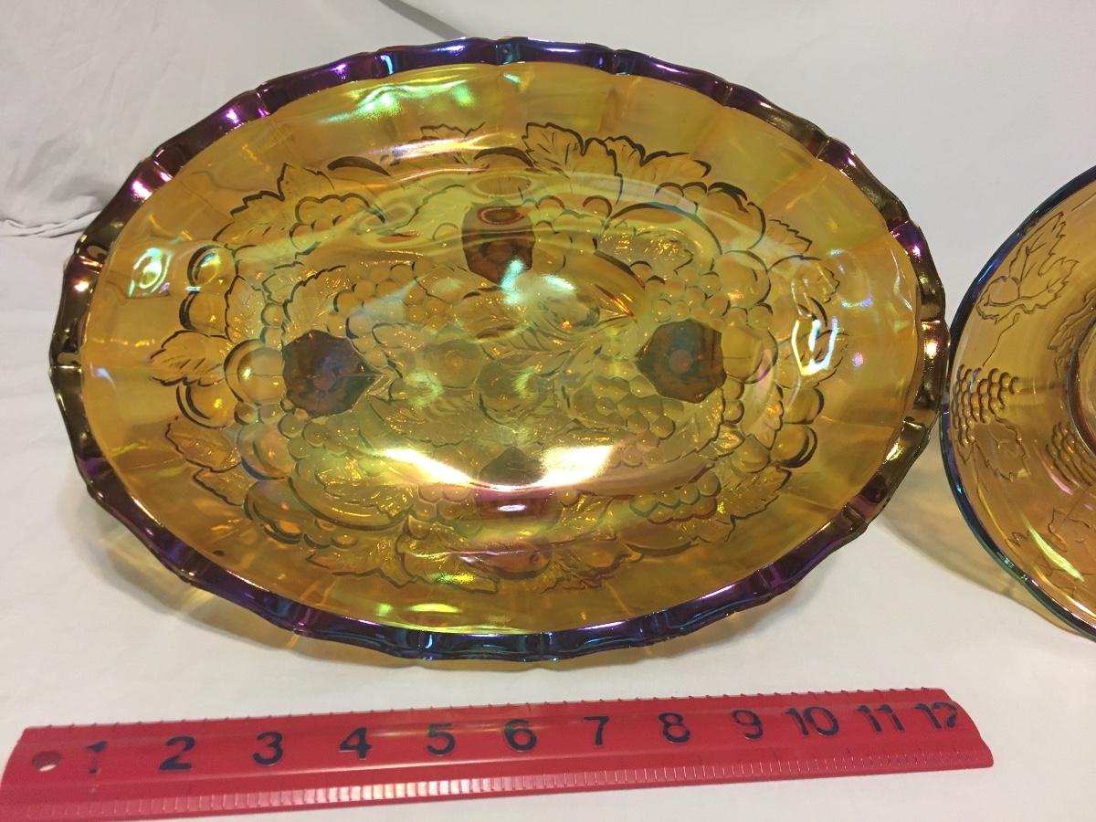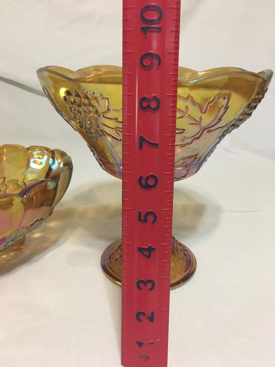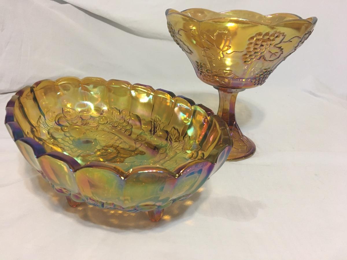 Vintage Amber carnival glass iridescent footed