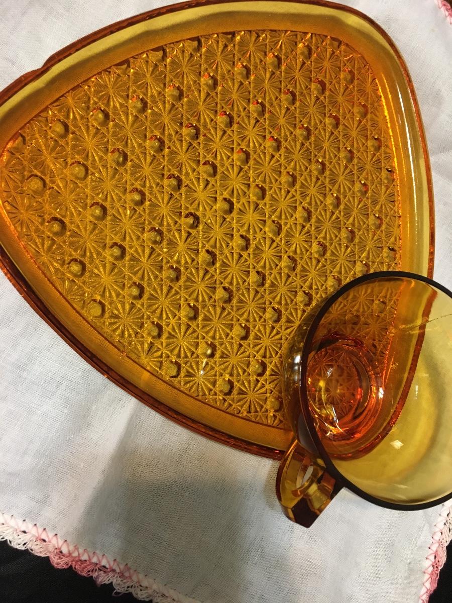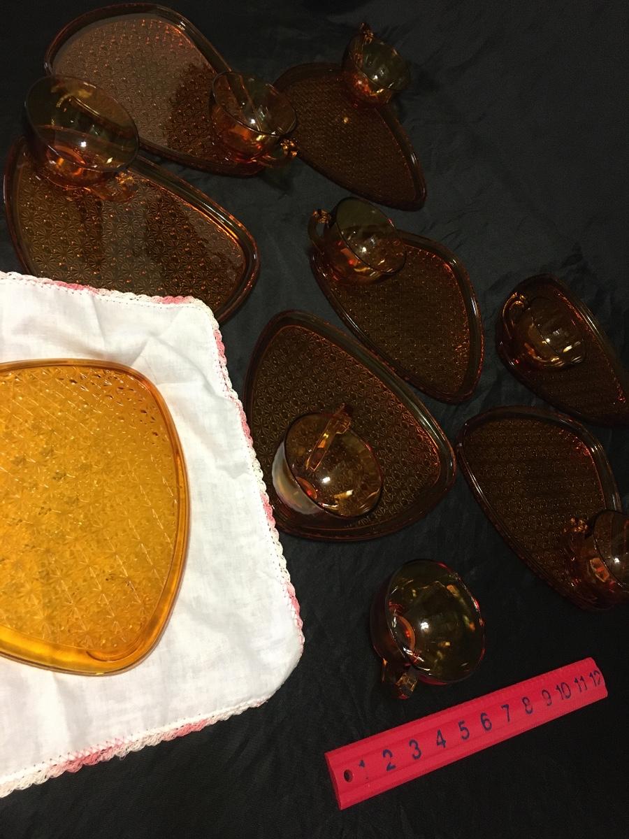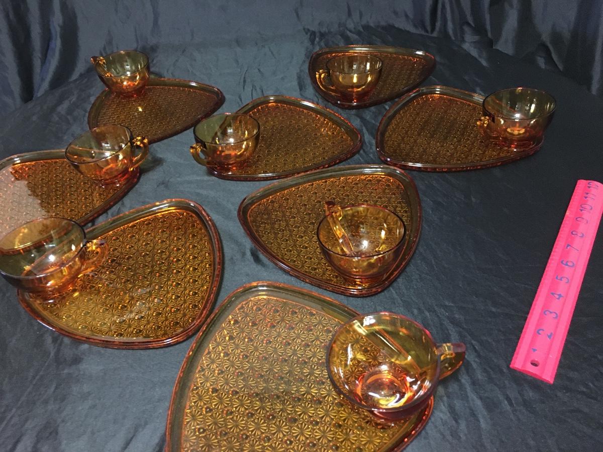 Set of 8 Vintage Amber daisy Pattern luncheon plate and cup