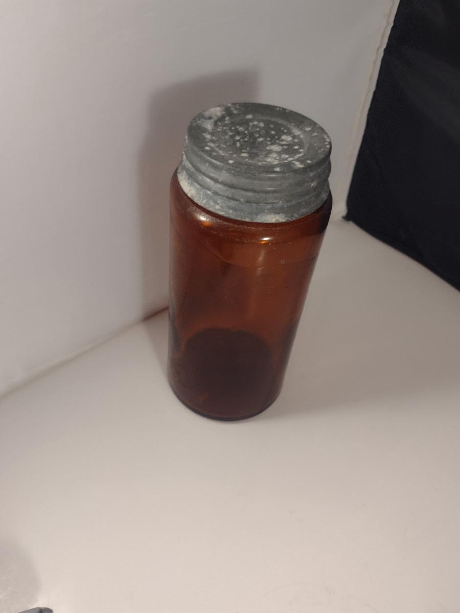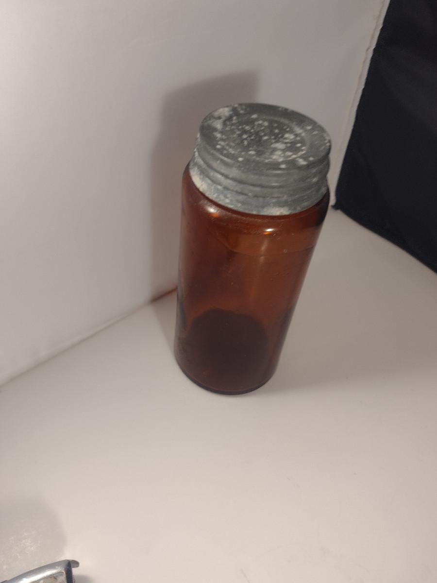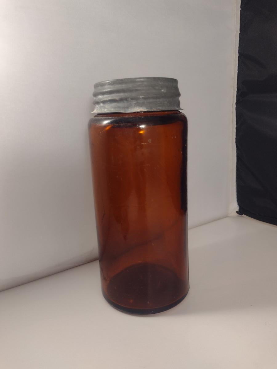 Vintage Amber Glass Jar with Galvanized Lid- Approx 7 1/2" Tall