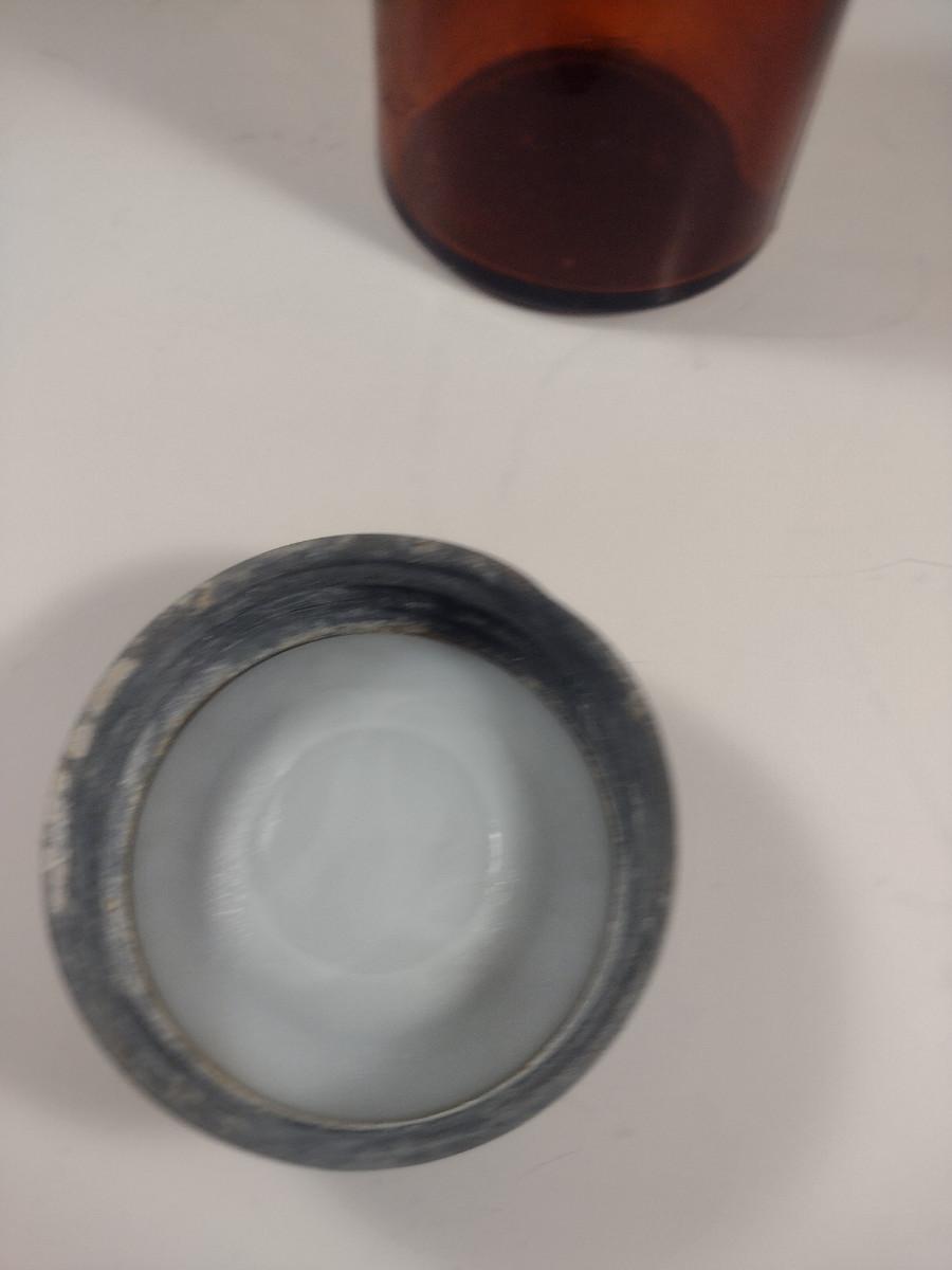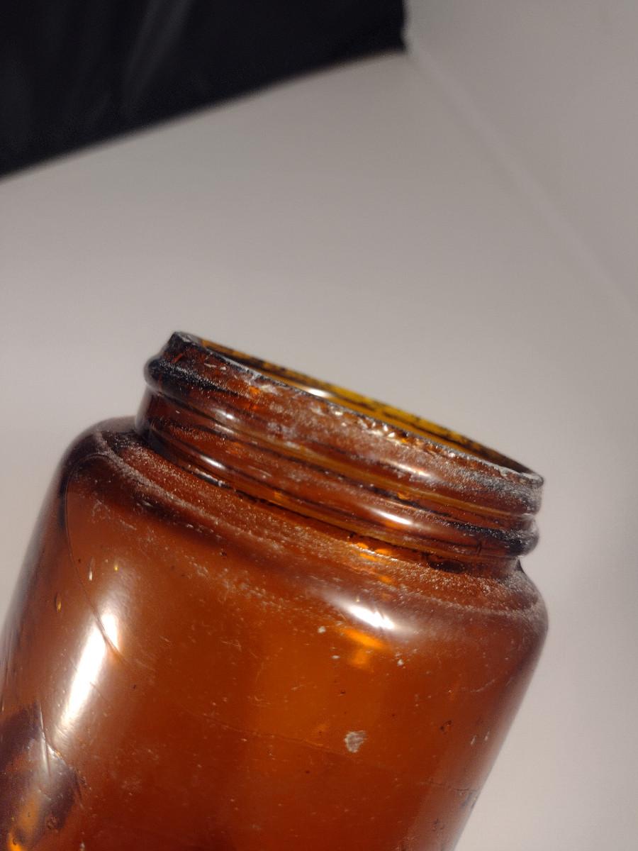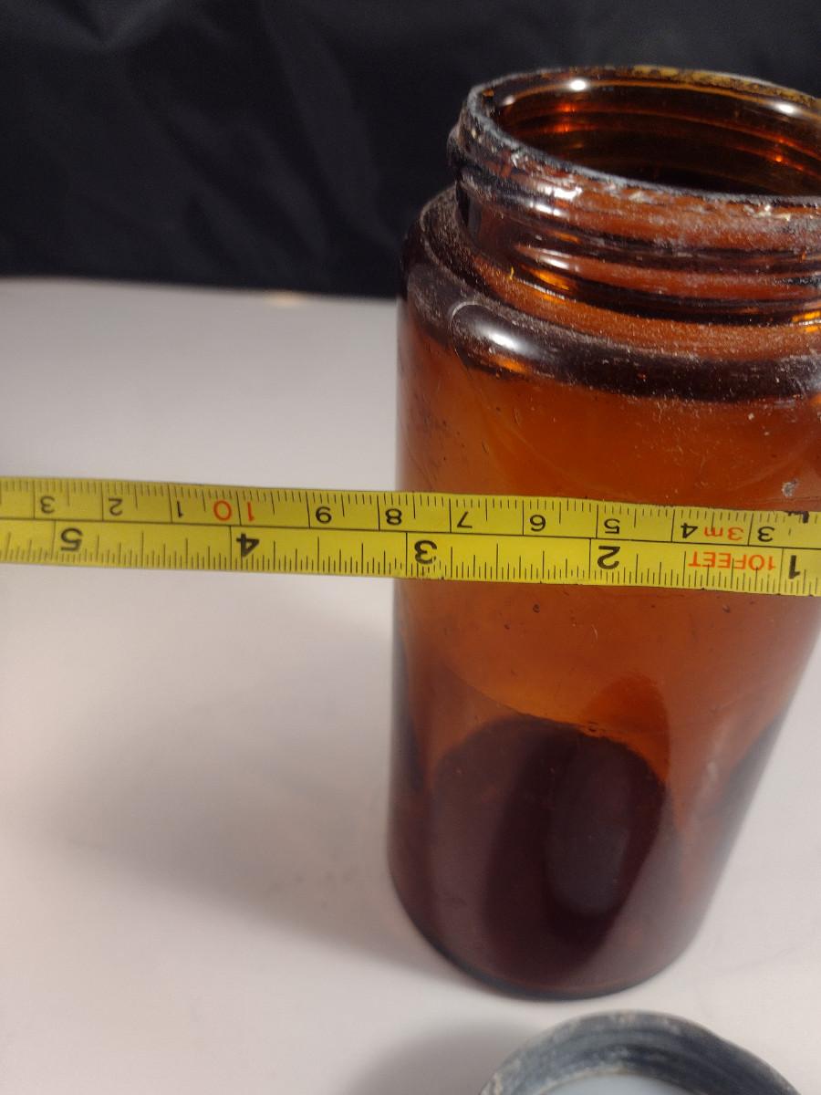 Vintage Amber Glass Jar with Galvanized Lid- Approx 7 1/2" Tall