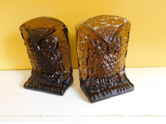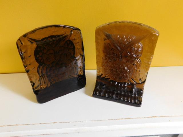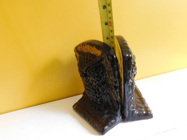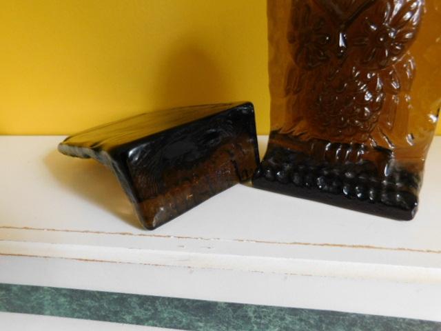 Vintage Amber Glass Owl Bookends 7" x 5" in good condition
