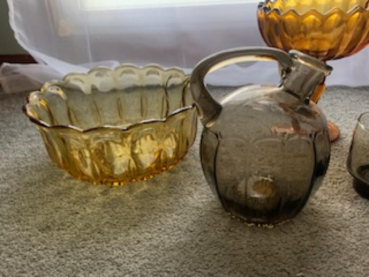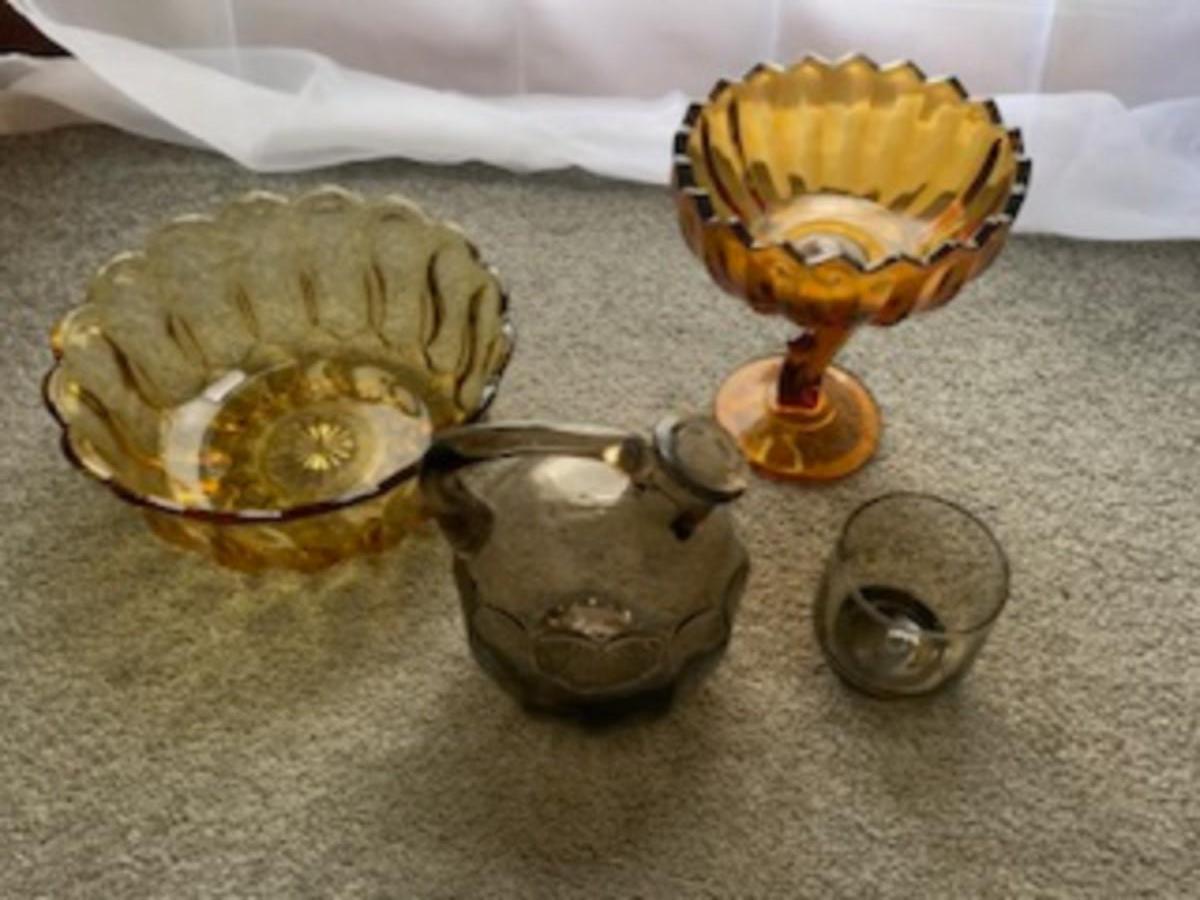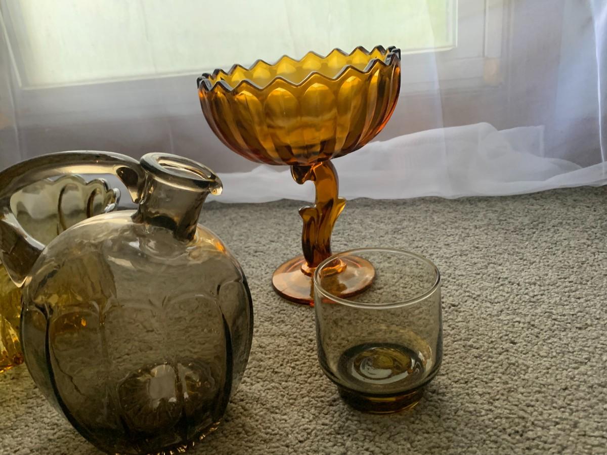 Vintage Amber Glassware Set Bowl, Goblet, Tumbler & Jug (4-Piece)