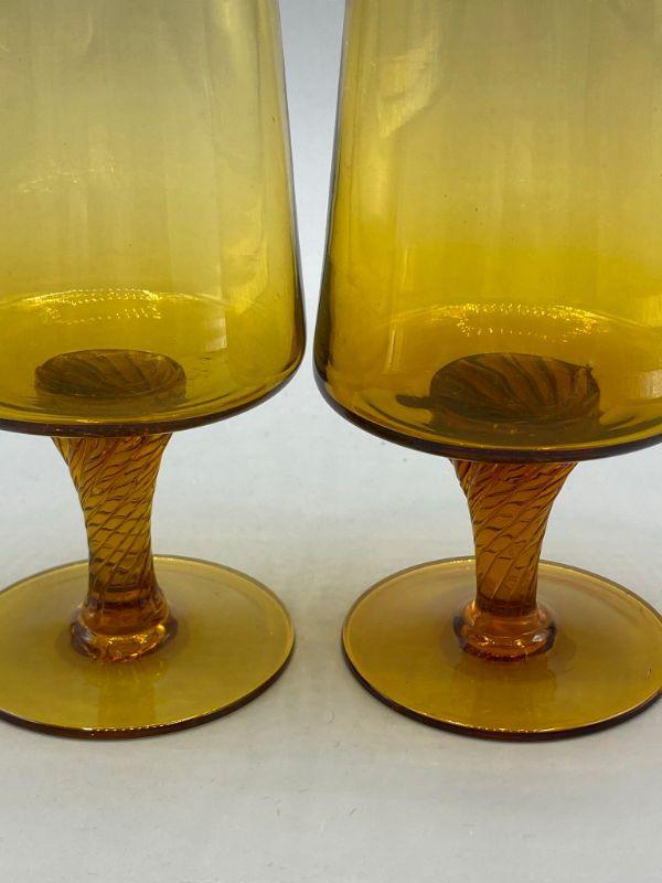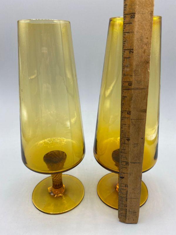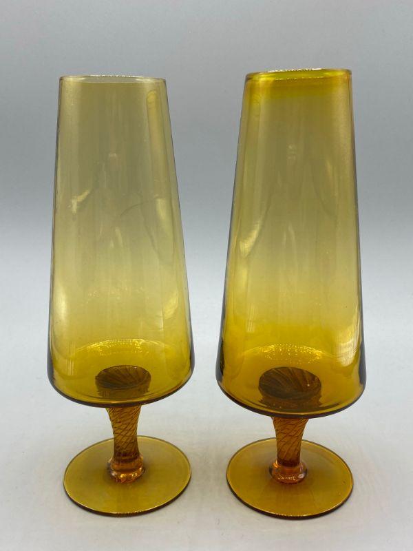 Vintage Amber Gold Blown Glass Champagne Flute Glasses YD#011-1120-00059