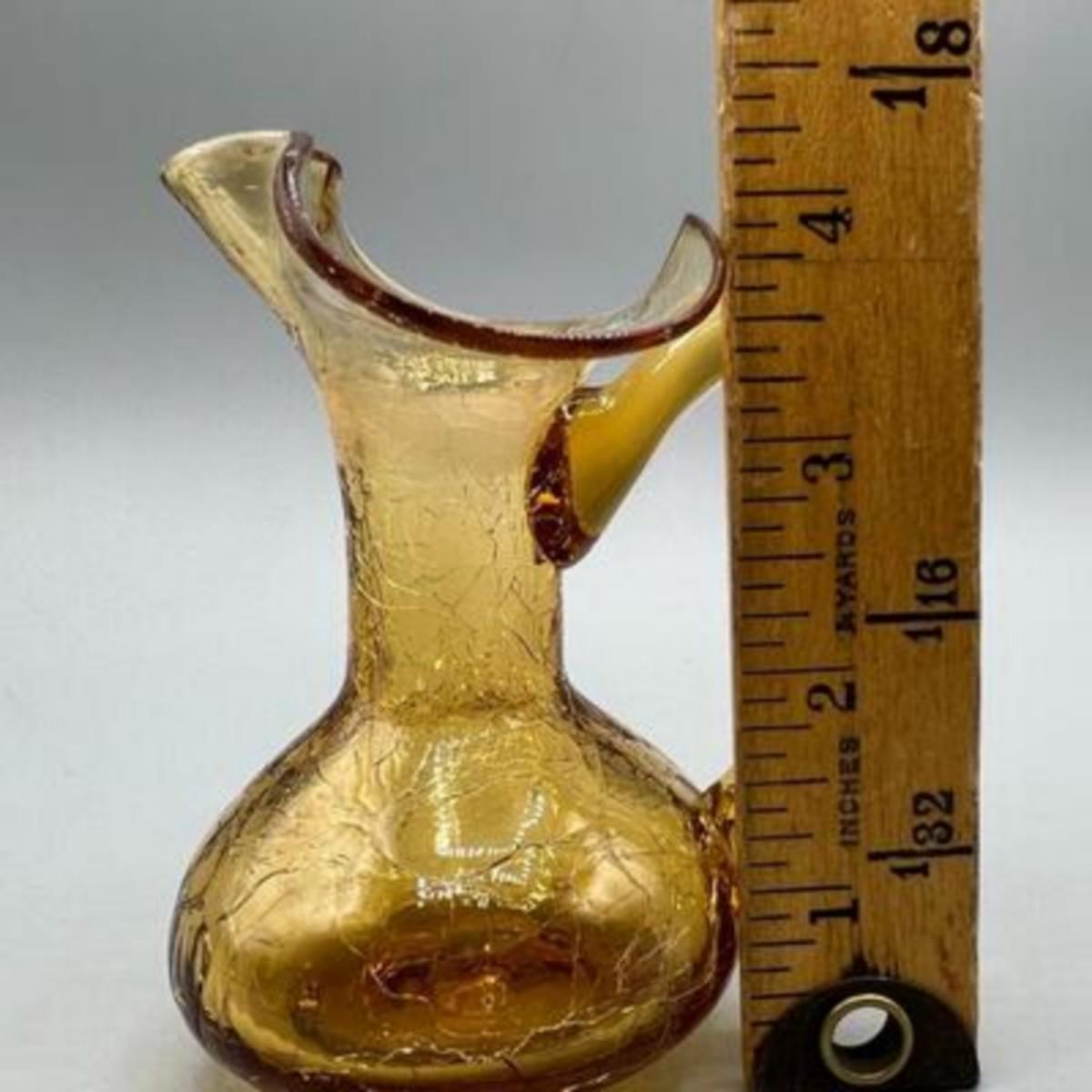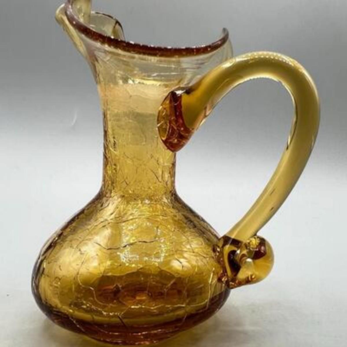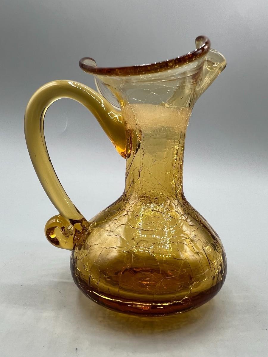 Vintage Amber Gold Handcrafted Blown-Glass Crackle Small Pitcher Bottle Cruet