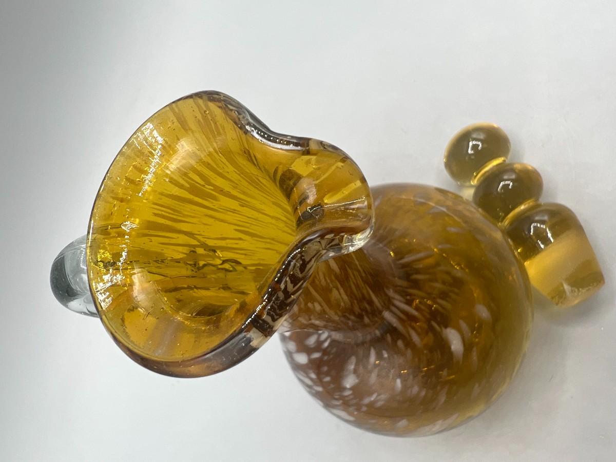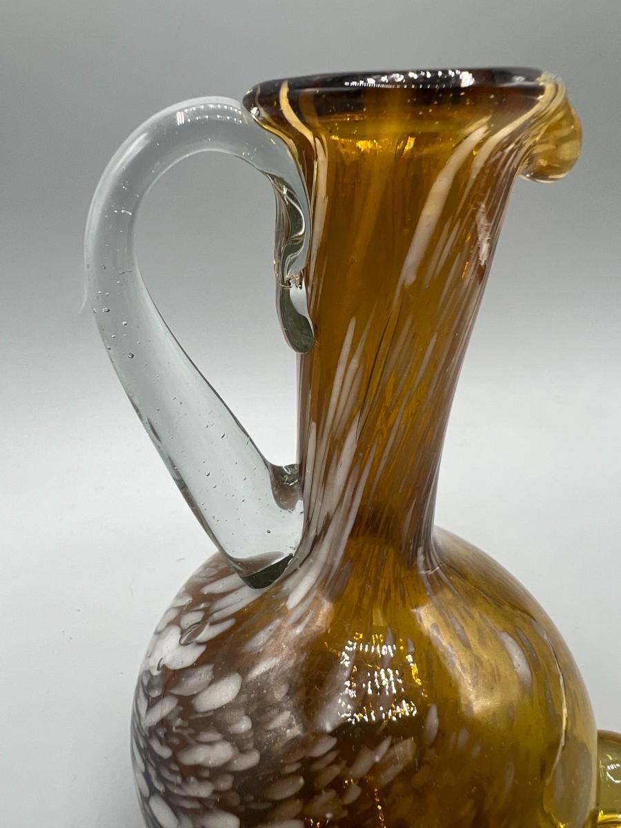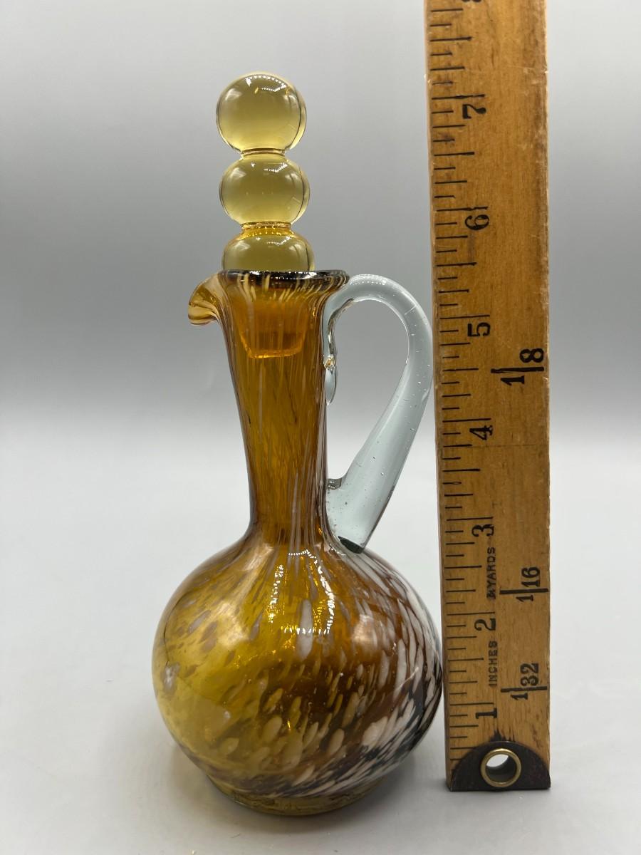 Vintage Amber Hand Blown Glass Small Pitcher Cruet Container Bottle
