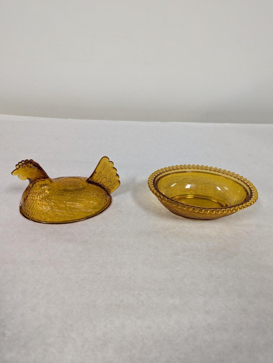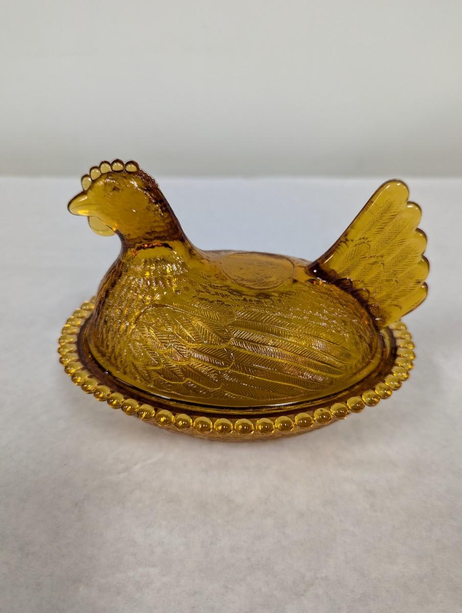 Vintage Amber Indiana Glass 7" Nesting Hen